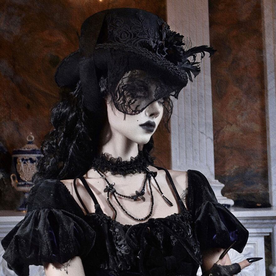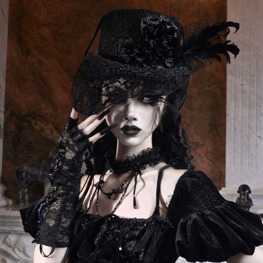 Alice style 暗黒 ベール ハット ダークゴシック 薔薇 レース ゴスロリファッション 舞台 イベント衣装