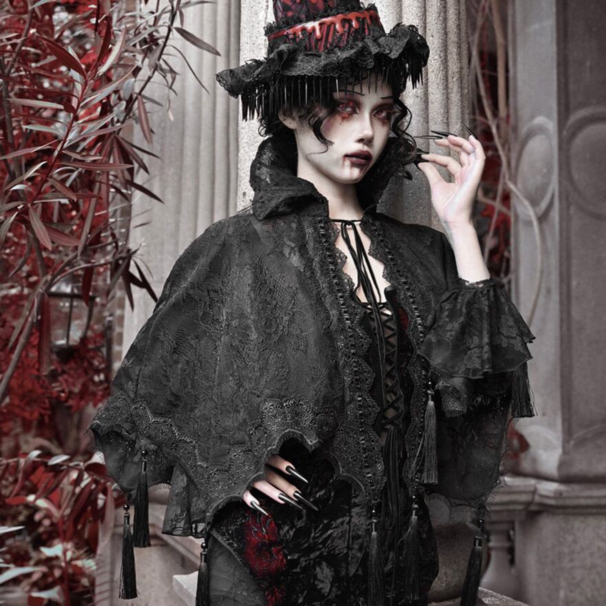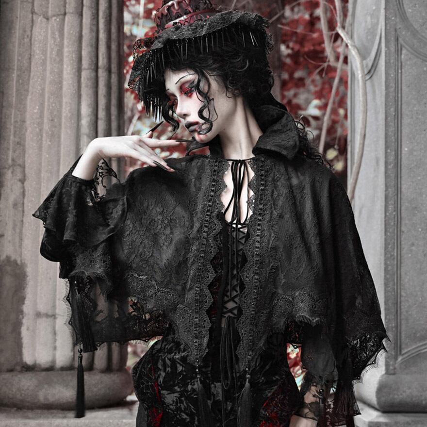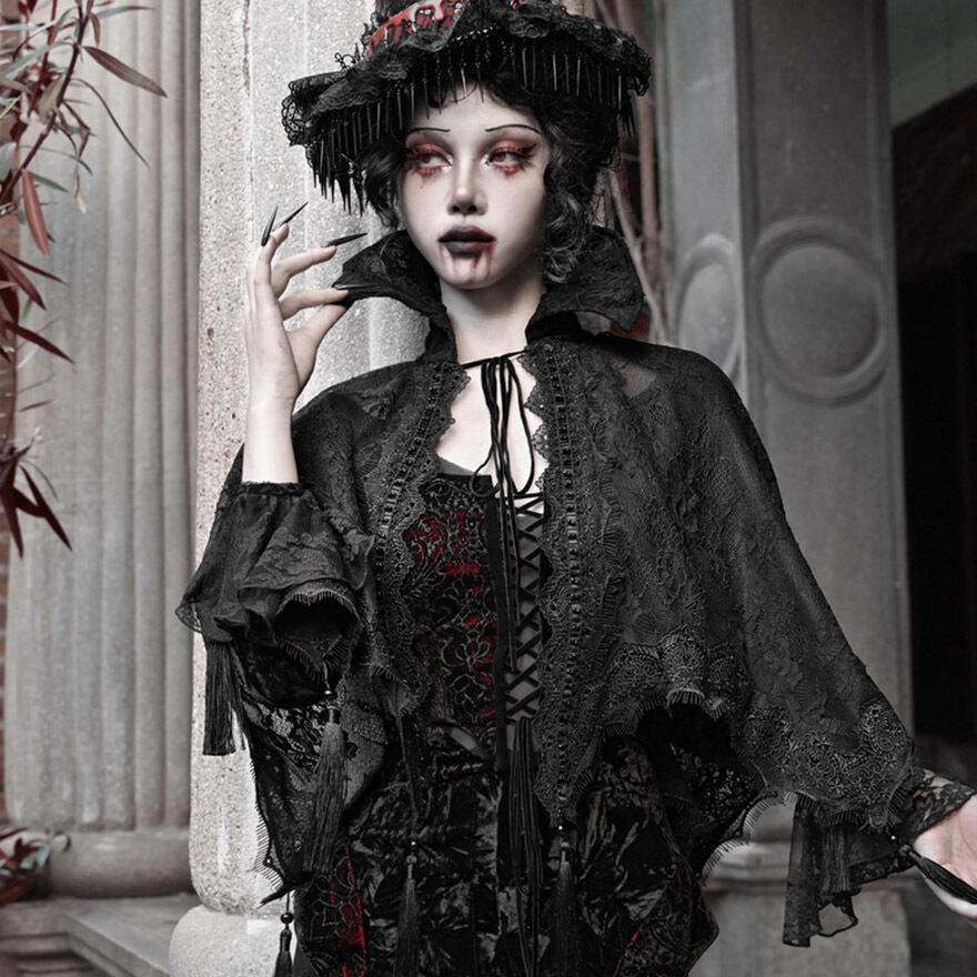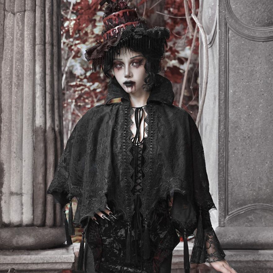 関連キーワード: #ゴスロリ #ゴシック #ケープ #羽織り #レース #タッセル #ダークファッション #サブカルファッション #舞台衣装 #イベント #ハロウィン #V系 #吸血鬼 #地雷系