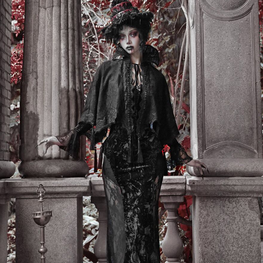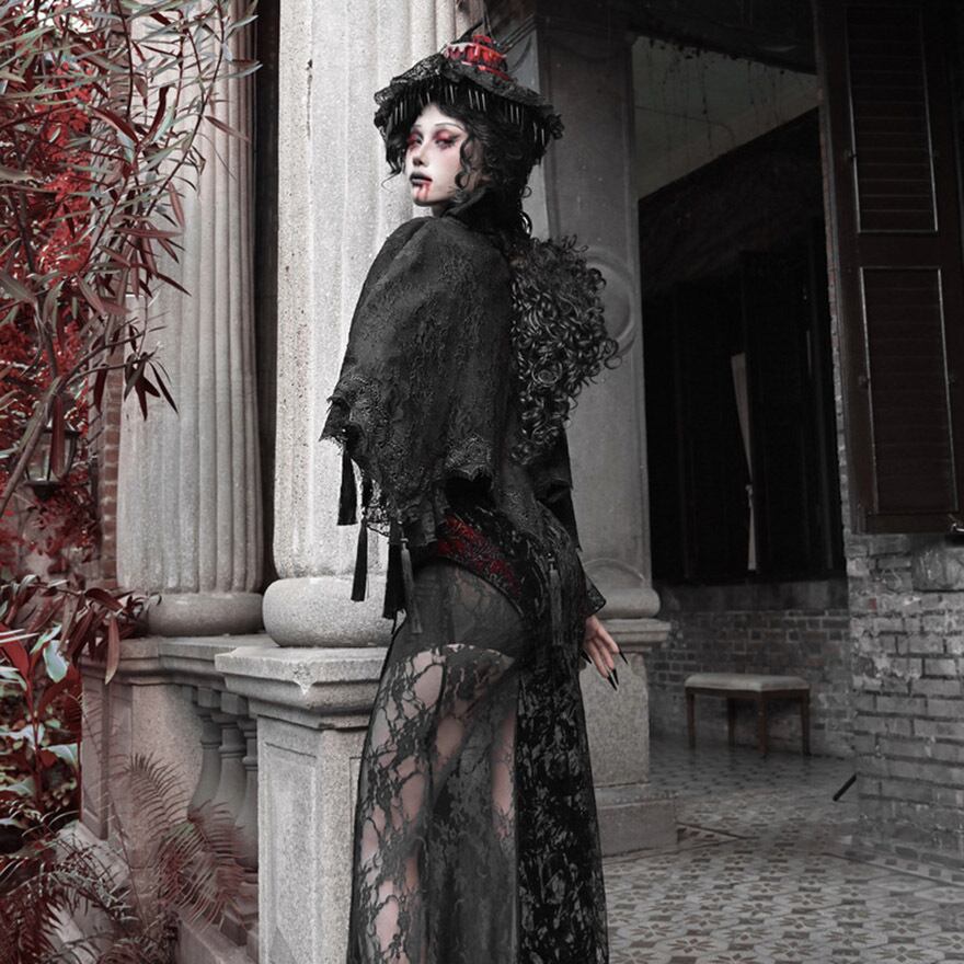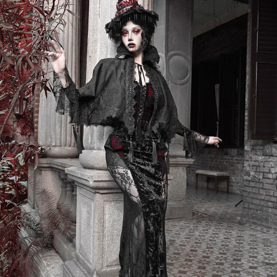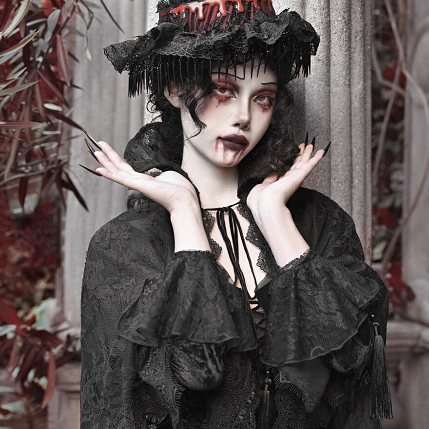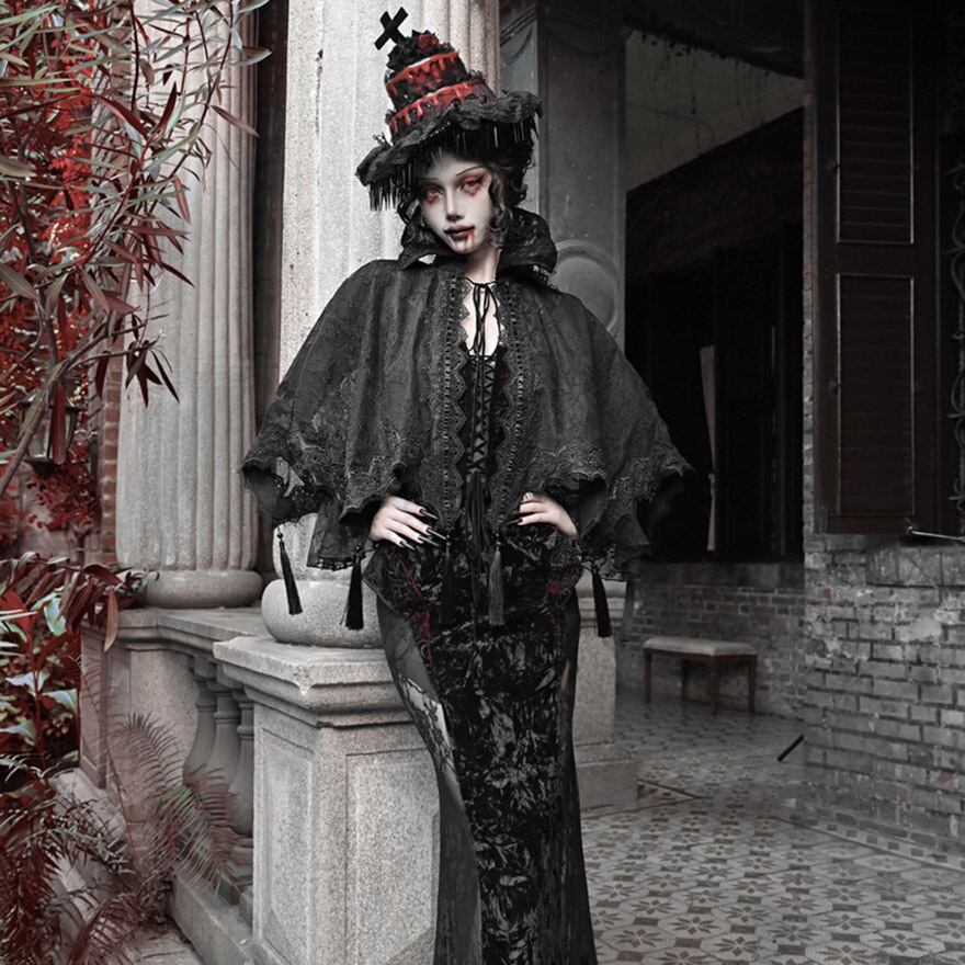 関連キーワード: #ゴスロリ #ゴシック #ケープ #羽織り #レース #タッセル #ダークファッション #サブカルファッション #舞台衣装 #イベント #ハロウィン #V系 #吸血鬼 #地雷系