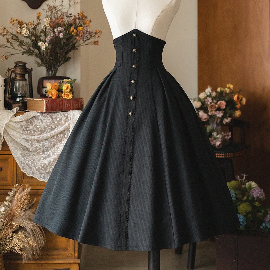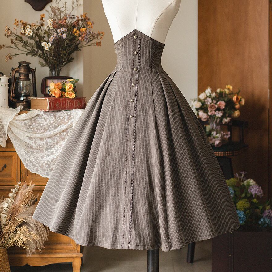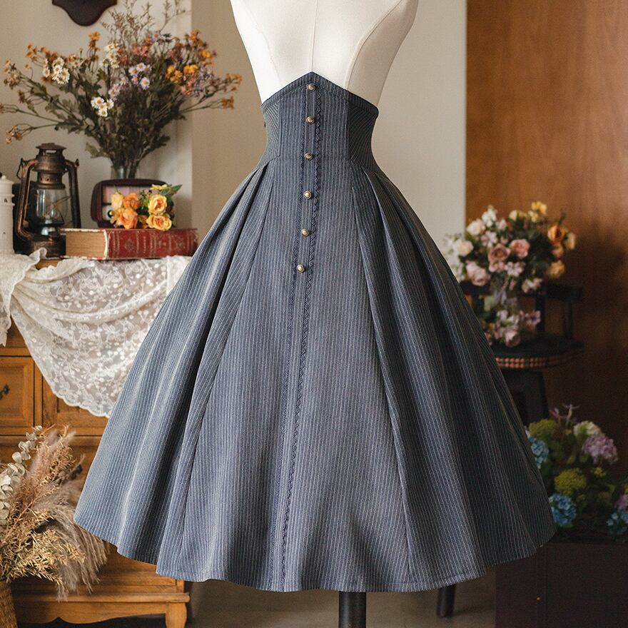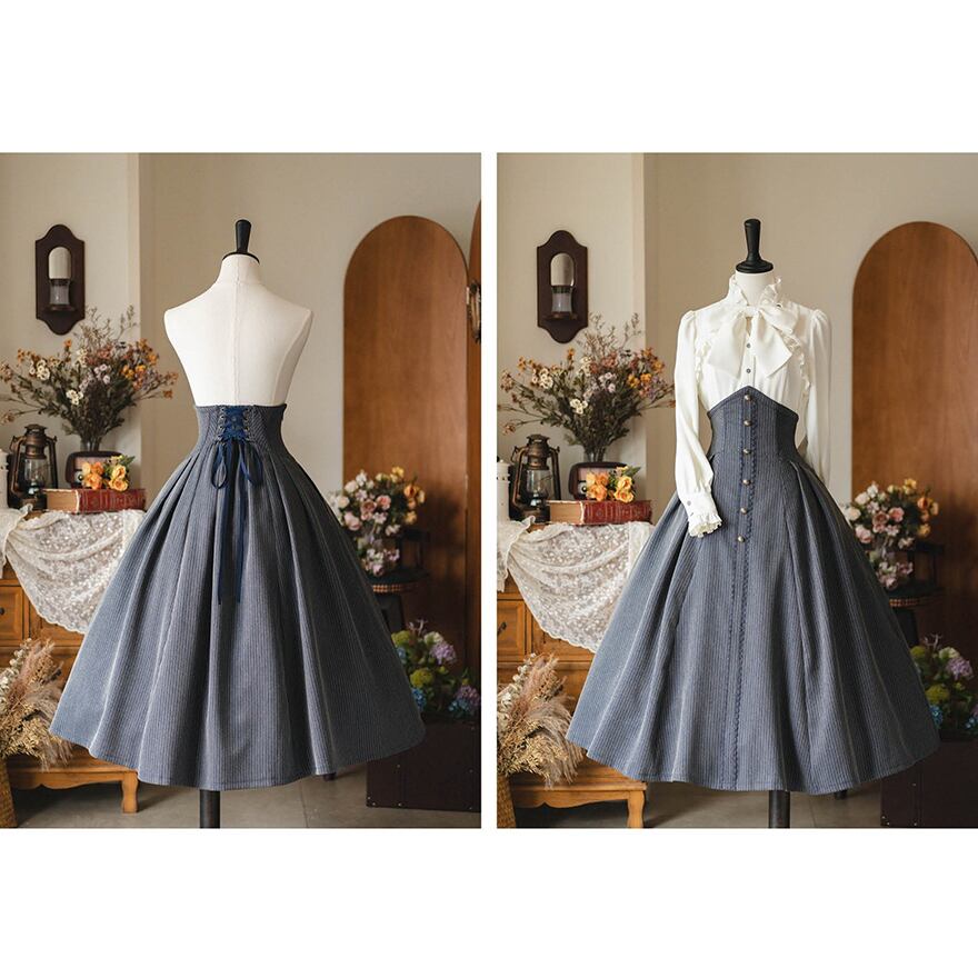 Alice style クラロリ ロングスカート ハイウエスト ピンストライプ柄 エレガント 控えめ アラサーファッション Forestシリーズ