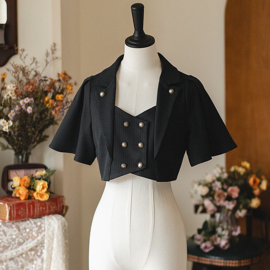 【クラシカルロリィタ】ピンストライプ ショート丈ジャケット金ボタン