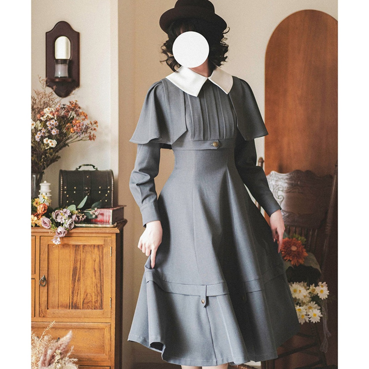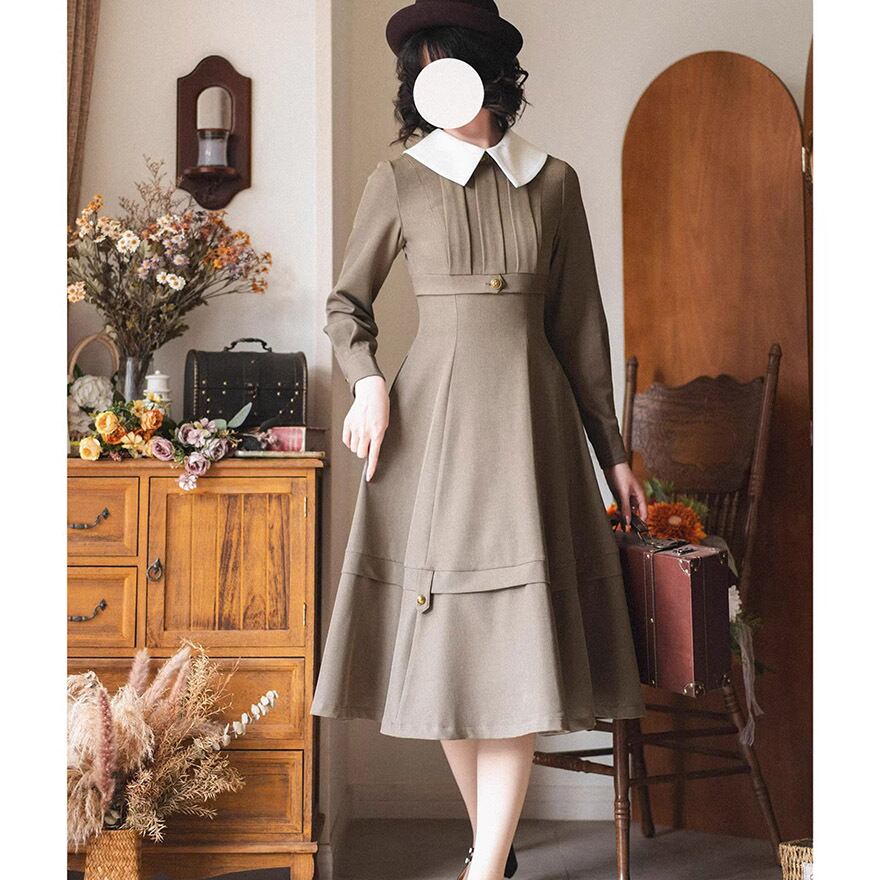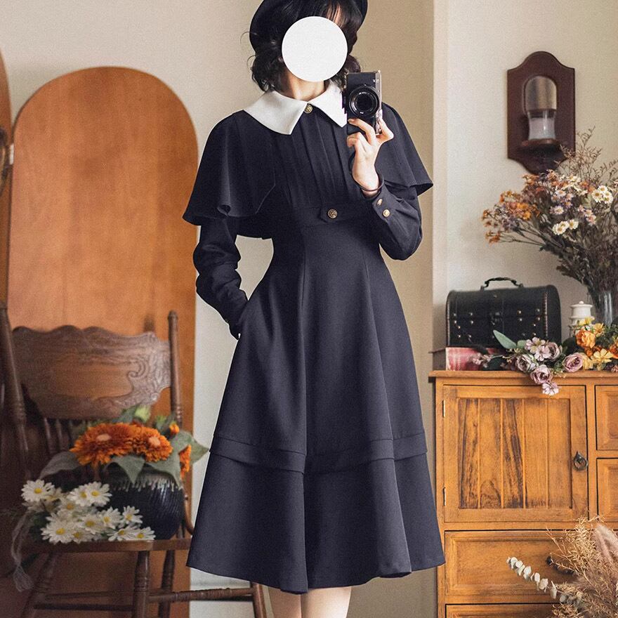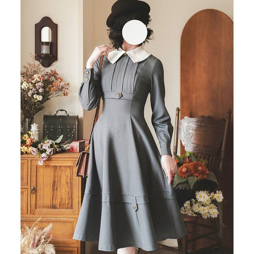 スタンドカラーや袖口のフリル、ウエストがシェイプされた美しいシルエットが、上品で洗練された印象を与えます。