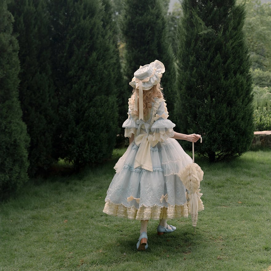 ふんだんにあしらわれたフリルやリボンが、まるでお人形のような、完璧なドーリーシルエットを創り出します。