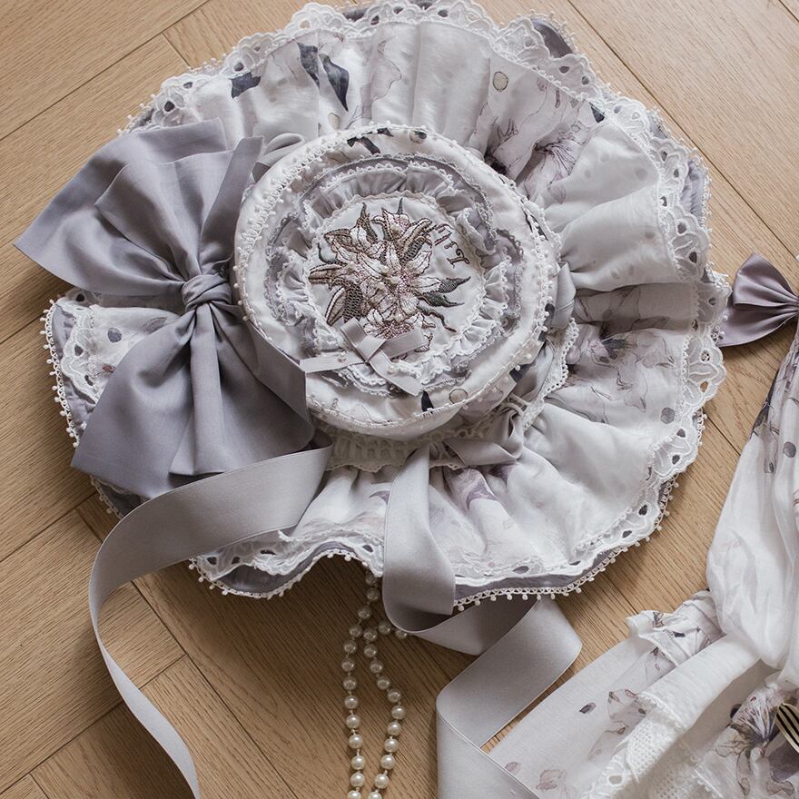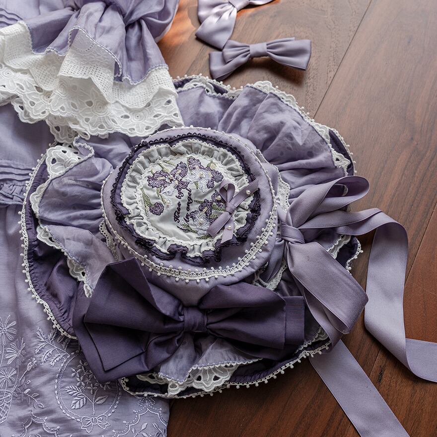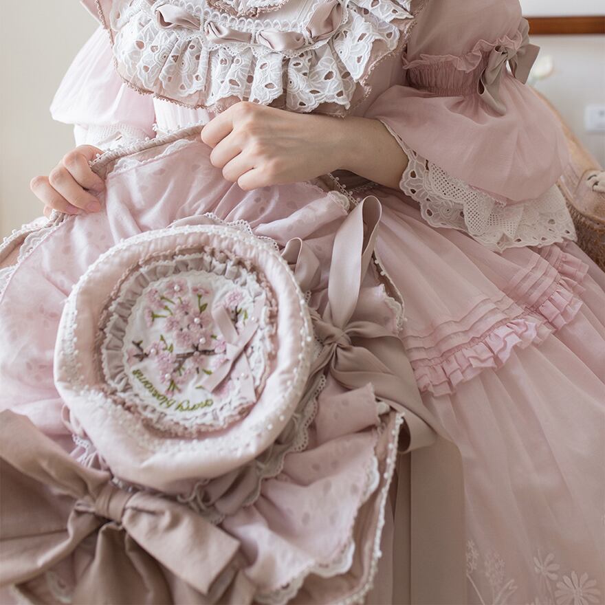 Alice style 予約商品 クラロリ 帽子 ハット 花柄 刺繍 フリル 姫袖 控えめ