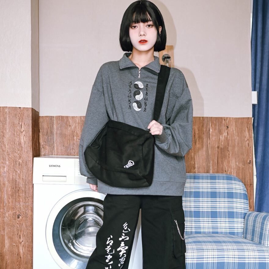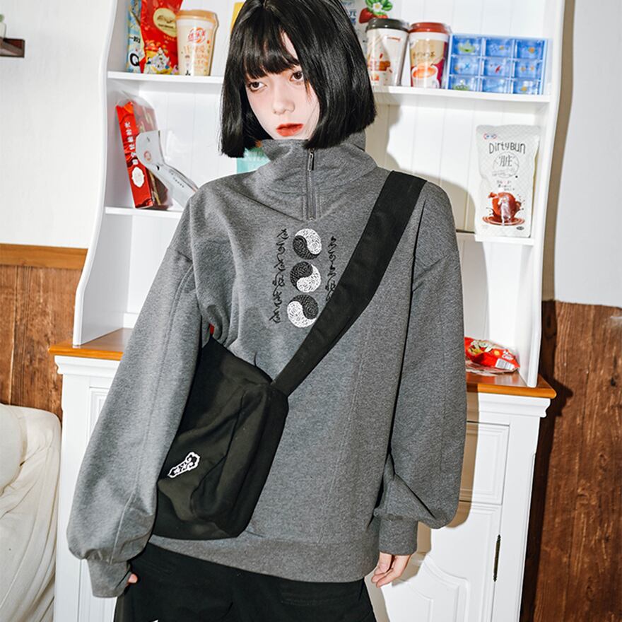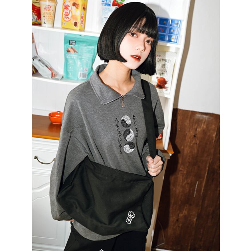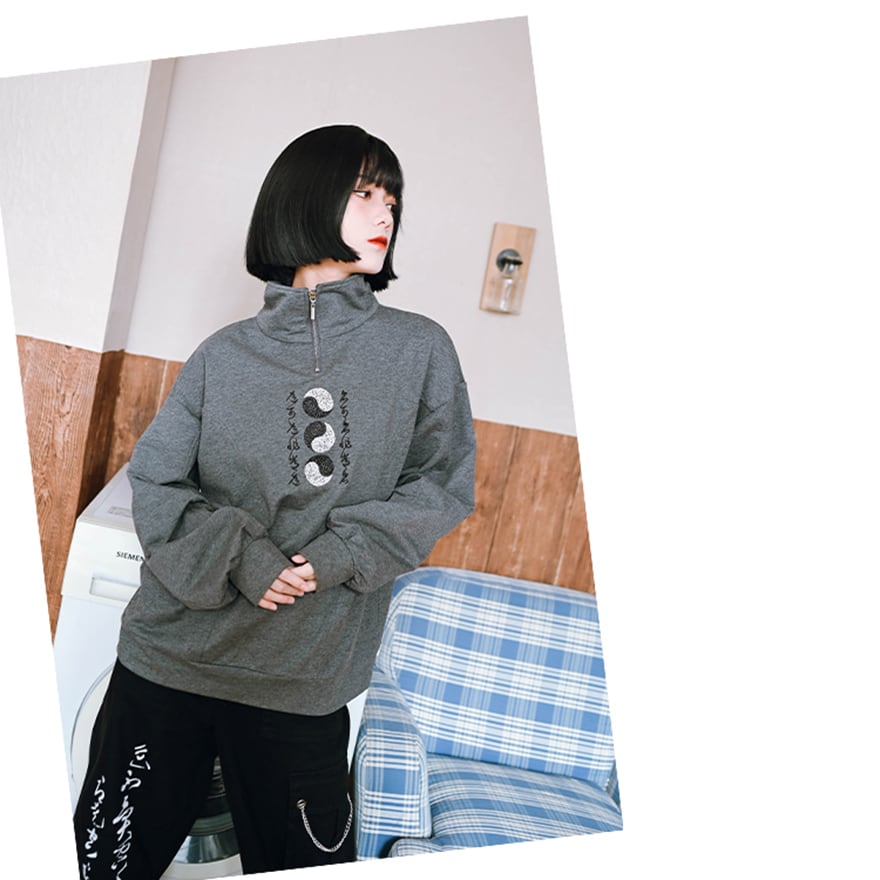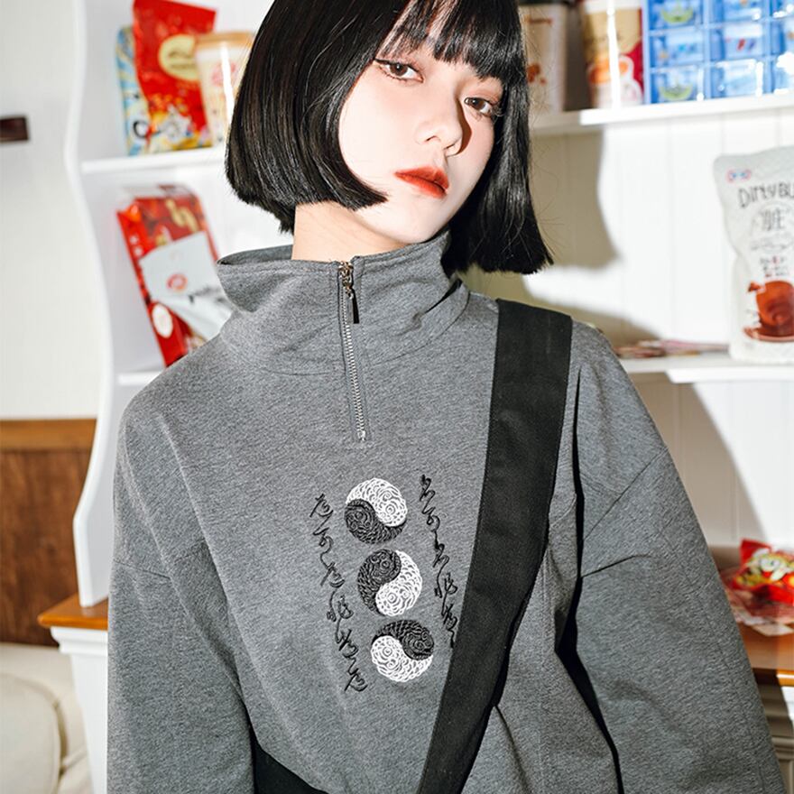 関連キーワード: #中華ゴシック #トレーナー #スウェット #サブカルファッション #ストリートファッション #刺繍 #陰陽 #太極図 #ハーフジップ #スタンドカラー #個性的