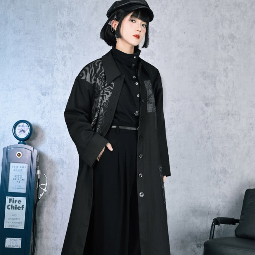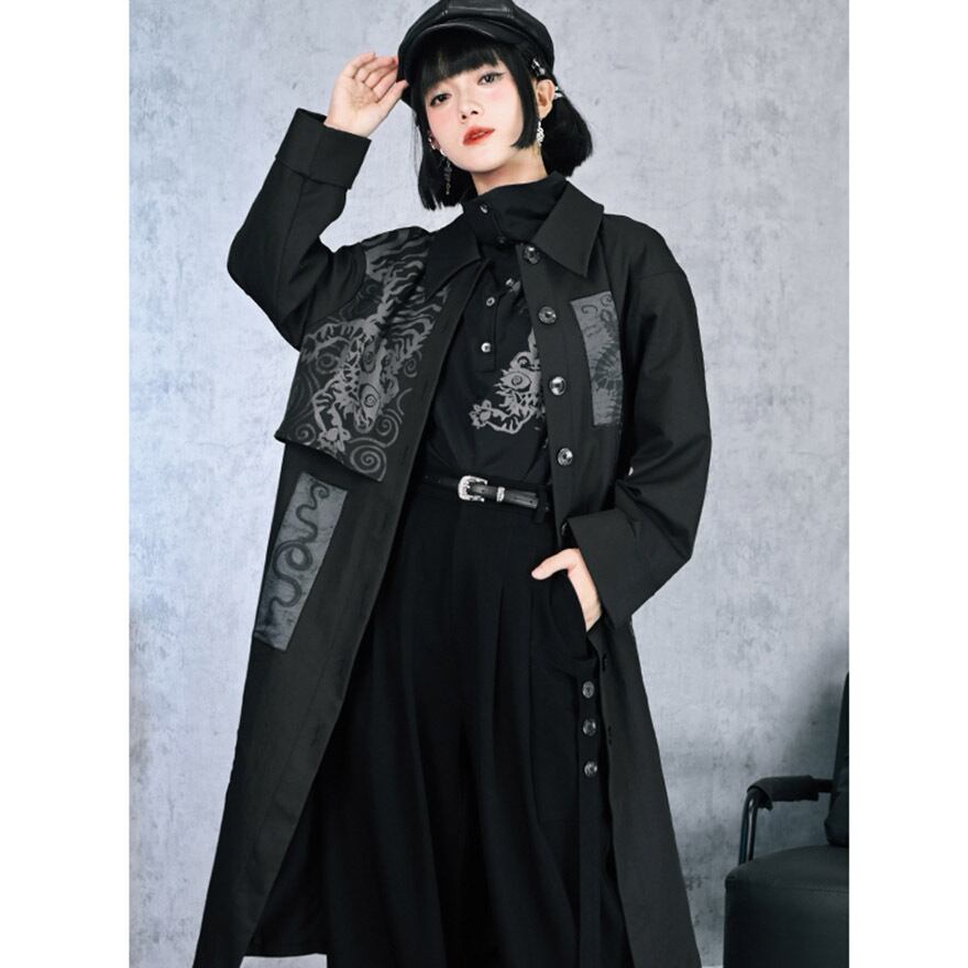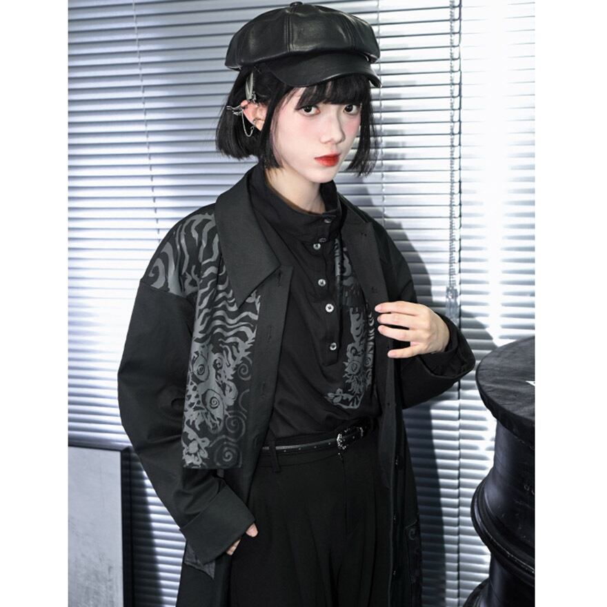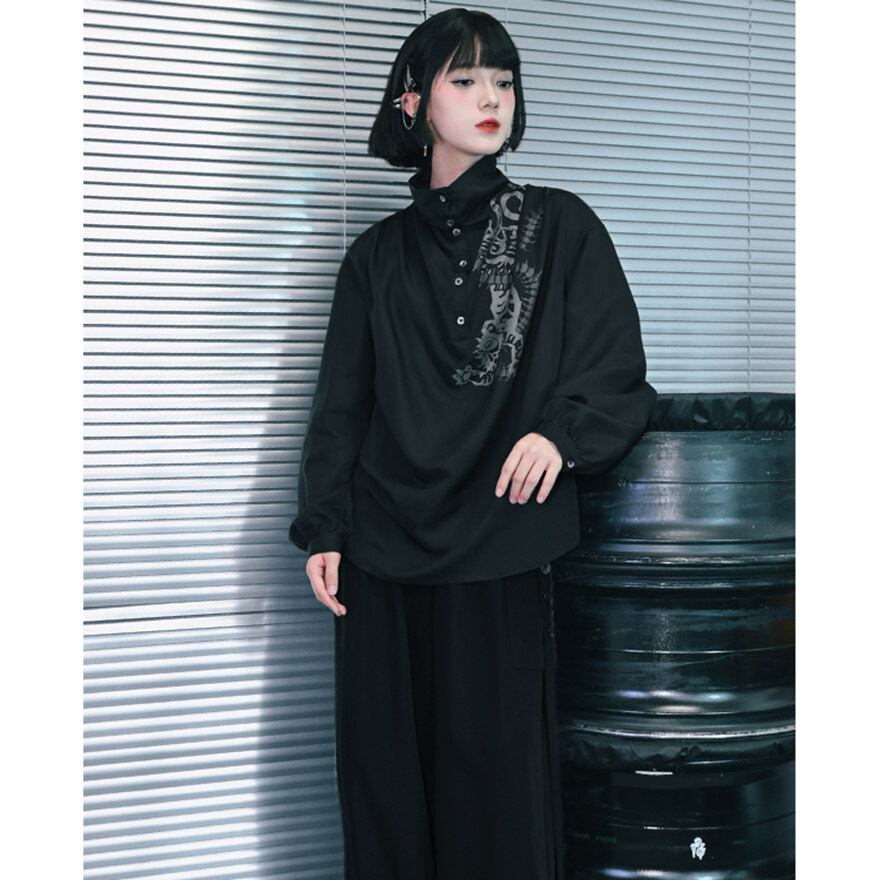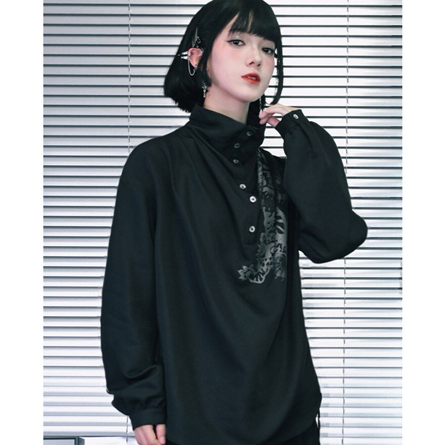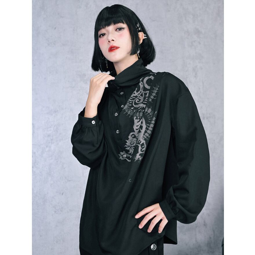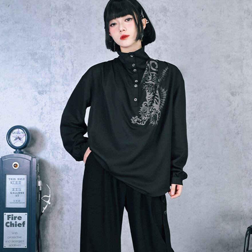 関連キーワード: #中華ゴシック #長袖シャツ #サブカルファッション #モード系 #ストリートファッション #龍 #プリント #スタンドカラー #アシンメトリー #個性的 #ダークファッション
