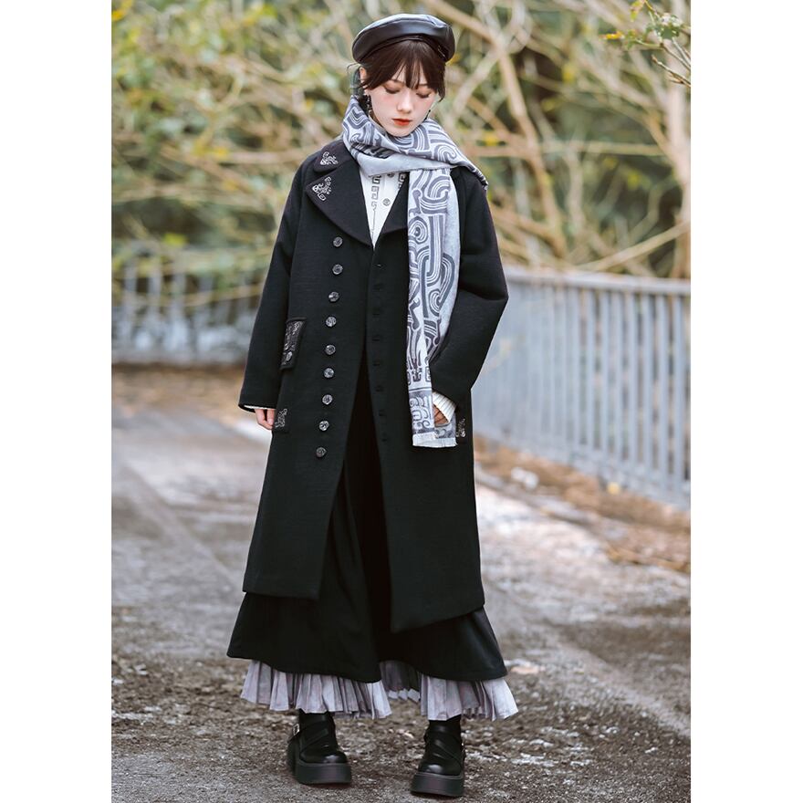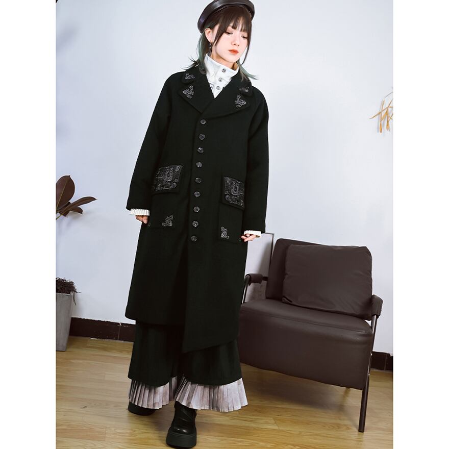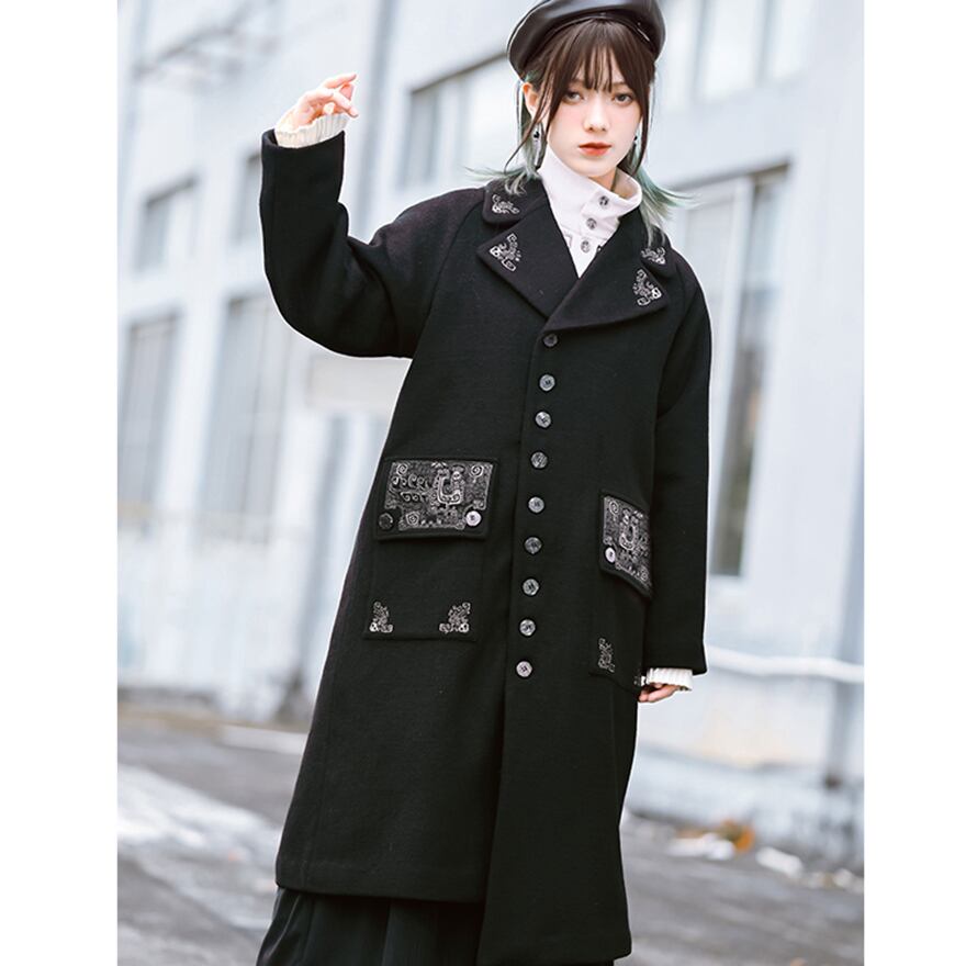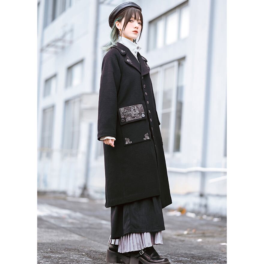 Alice style ウールコート ロング丈 刺繍 ゴスロリ