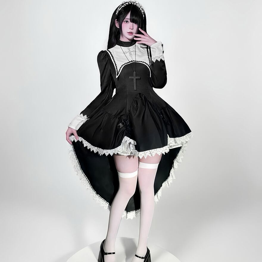 関連キーワード: #ゴスロリ #ロリータファッション #修道女 #シスター #コスプレ #ハロウィン #ワンピース #十字架 #モノトーン #フィッシュテール #ダーク #可愛い