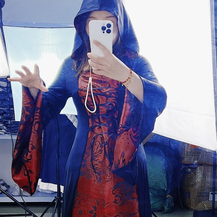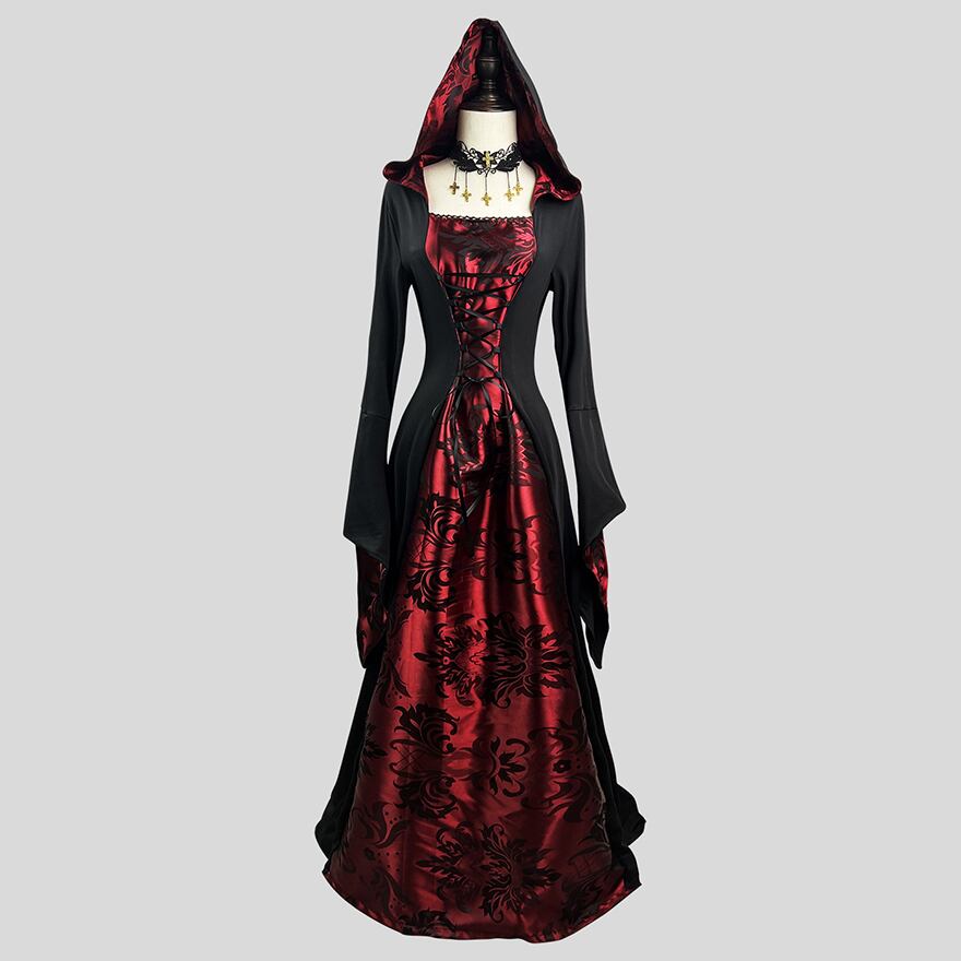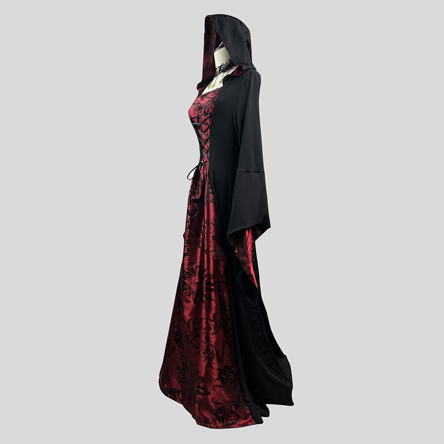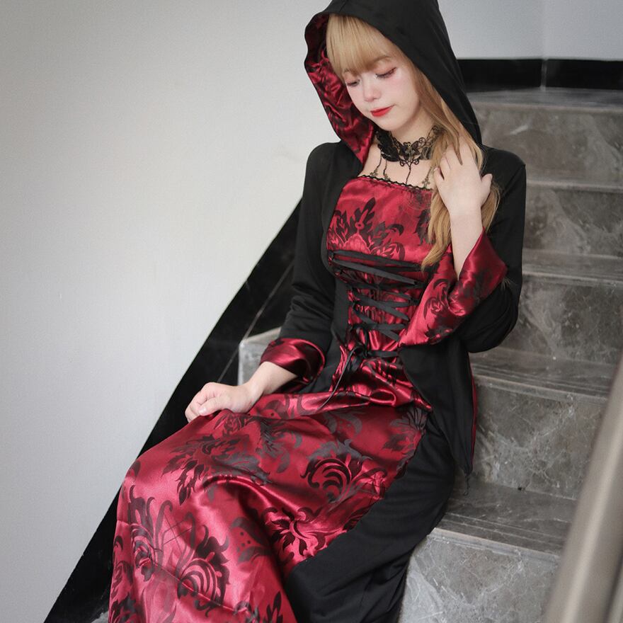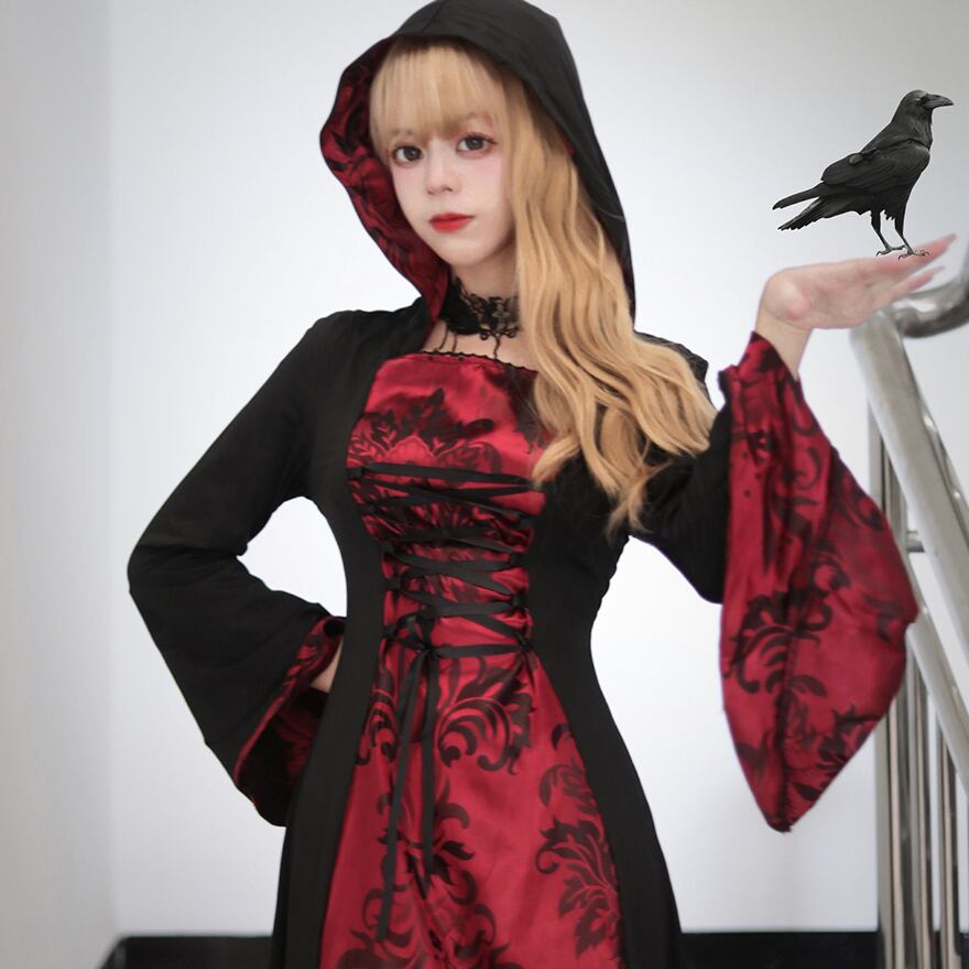 関連キーワード: #魔女 #コスチューム #ゴシック #ハロウィン #仮装 #コスプレ #ロングドレス #フード付き #ダークファンタジー #イベント #パーティー #個性的ファッション