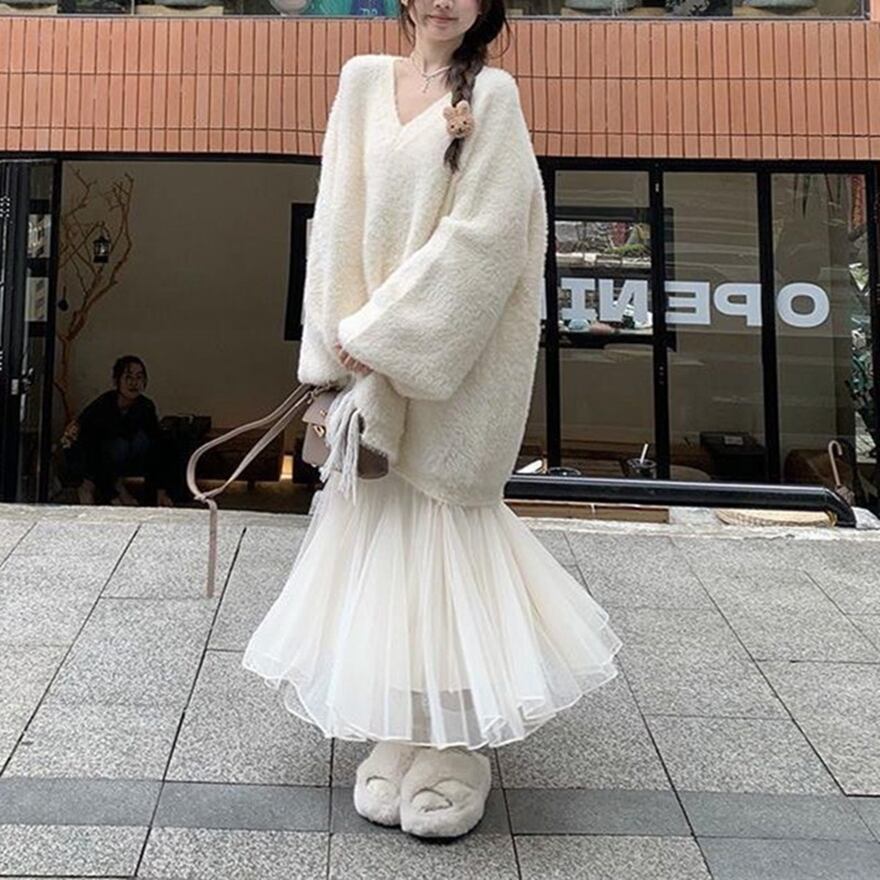 関連キーワード: #ロリータ #ホワイトロリィタ #白ロリ #セーター #ニット #シャギーニット #バルーンスリーブ #オーバーサイズ #ガーリー #可愛い #秋冬コーデ #デート服 #サブカル女子