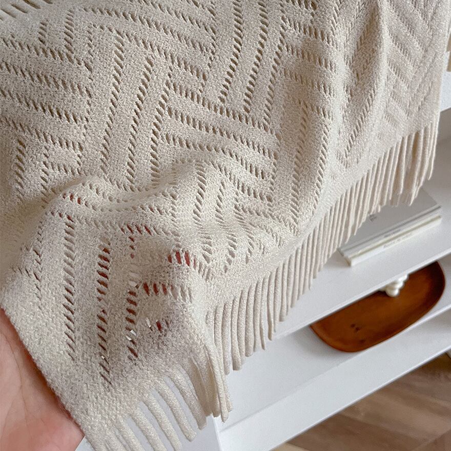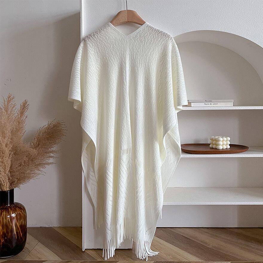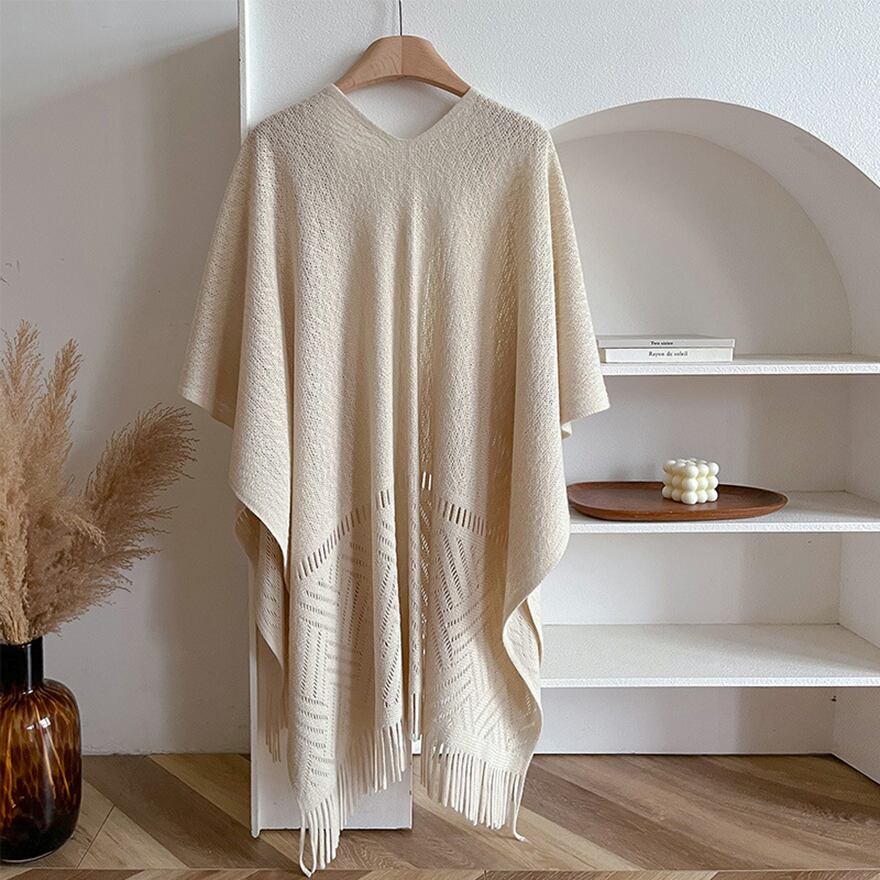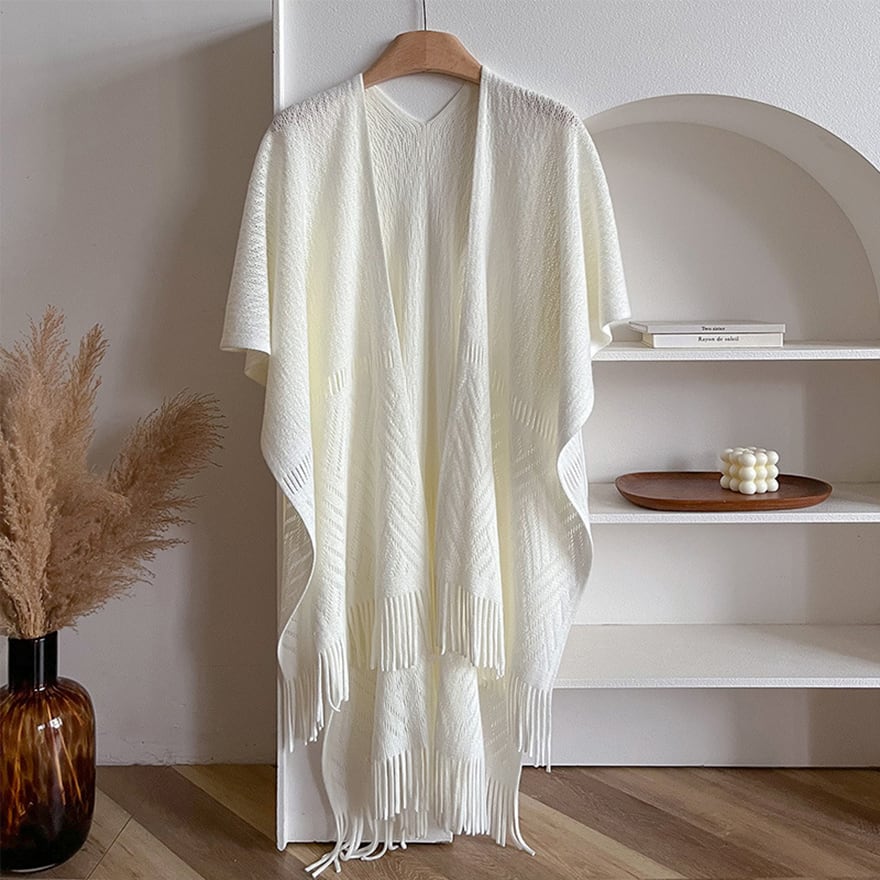 裾にあしらわれたフリンジが、動くたびに優しく揺れ、コーディネートのアクセントになります。