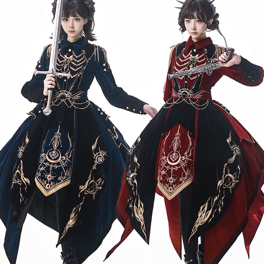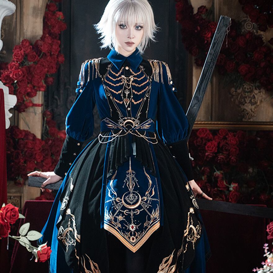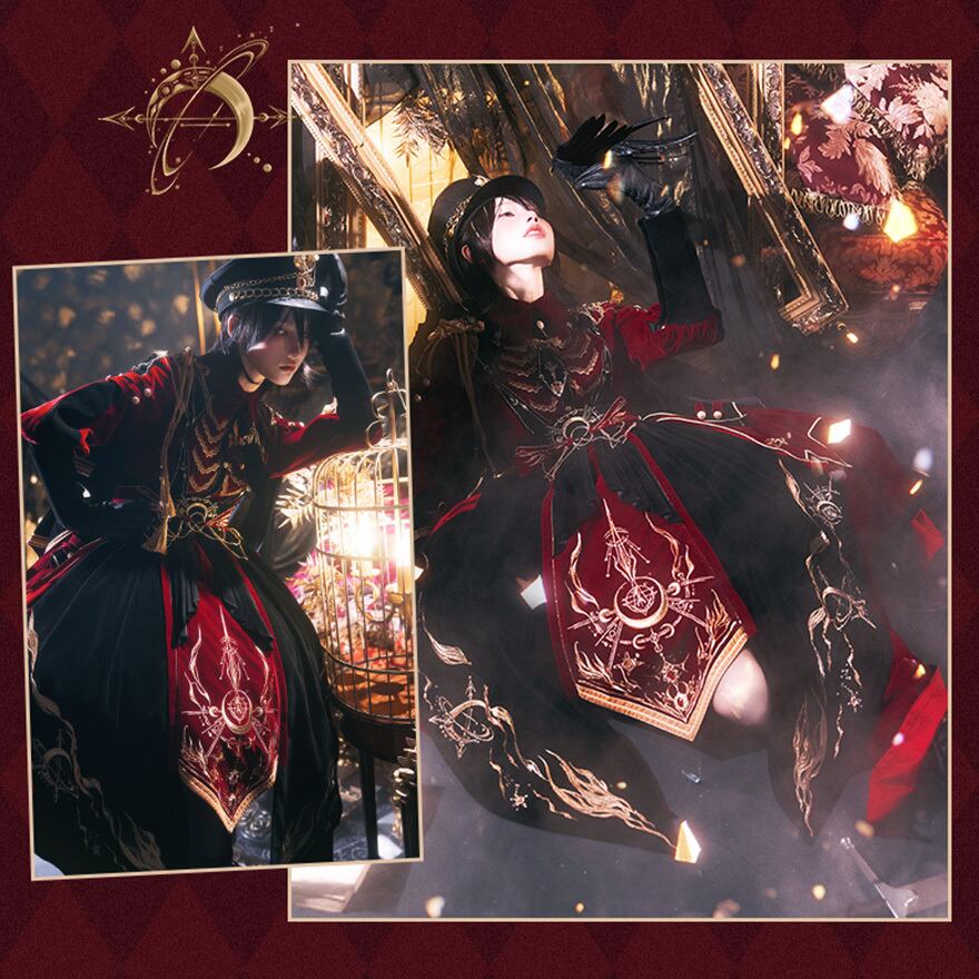 軍服をモチーフにした、気品あふれるミリタリーロリータのセットアップです。