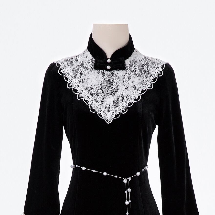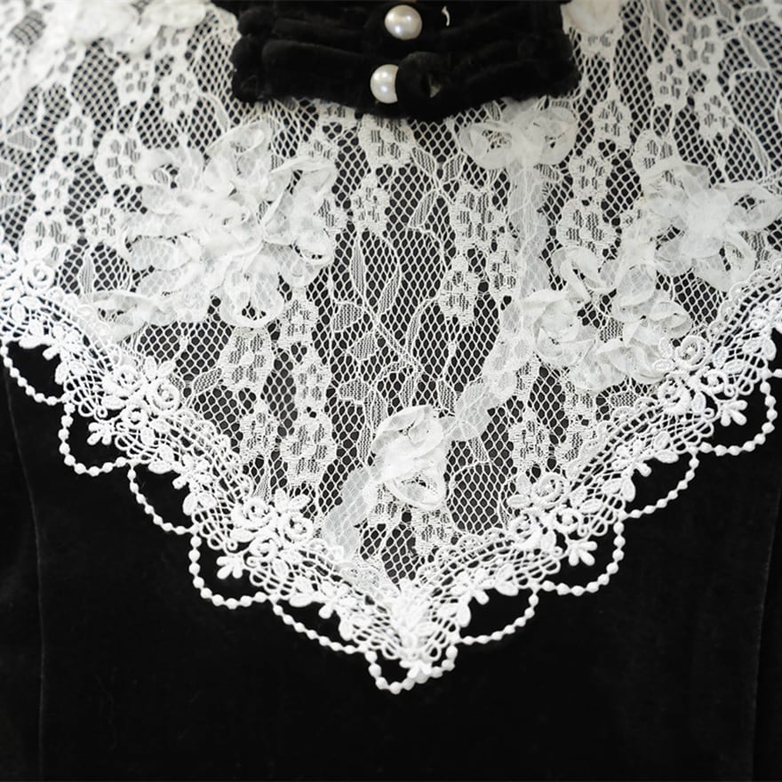 ベルベットの重厚感とレースの繊細さが融合した、高級感あふれる一枚です。