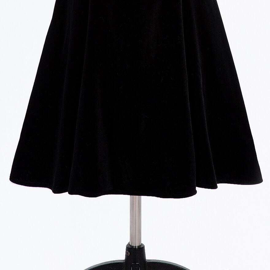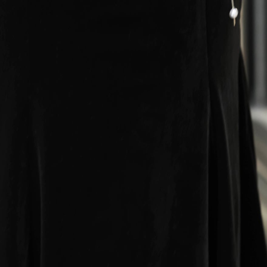 上品な光沢を持つブラックベルベット生地を使用した、ロング丈のワンピースです。