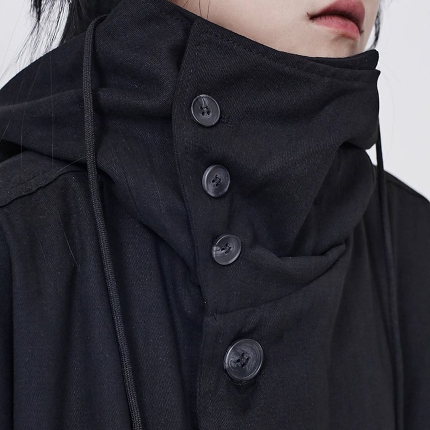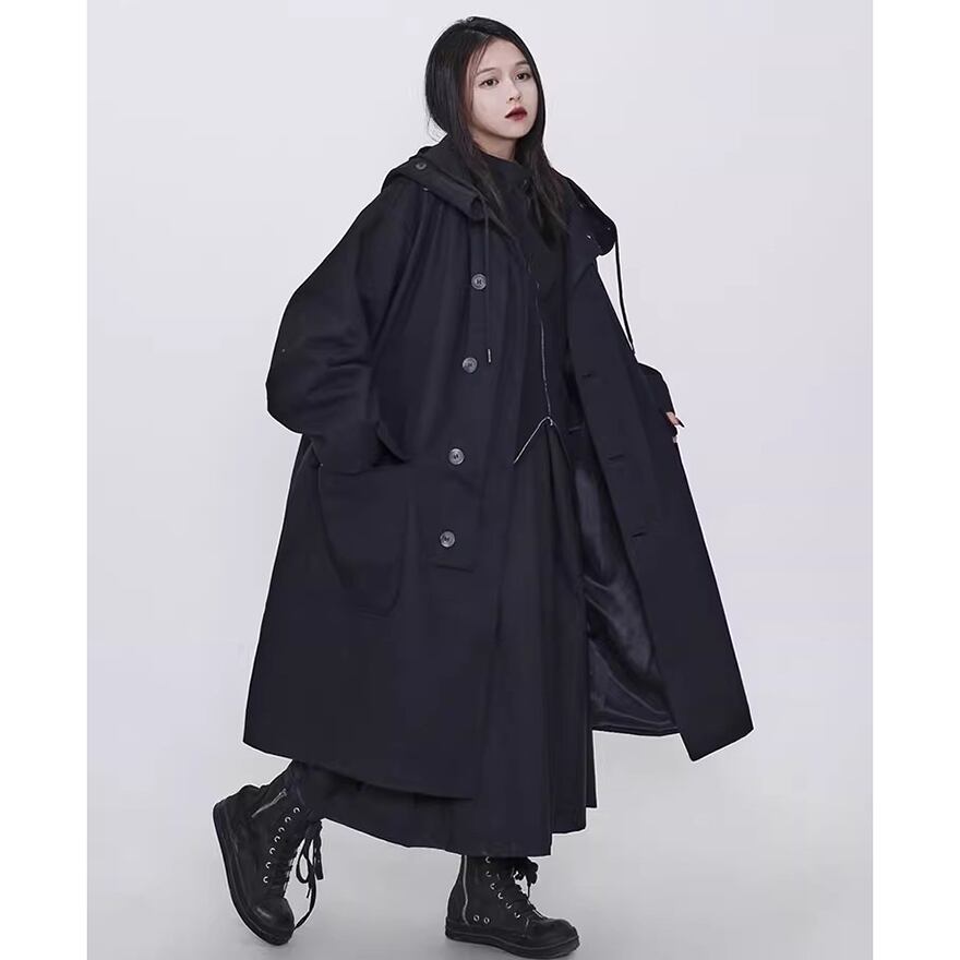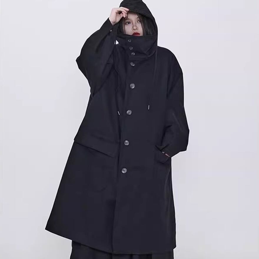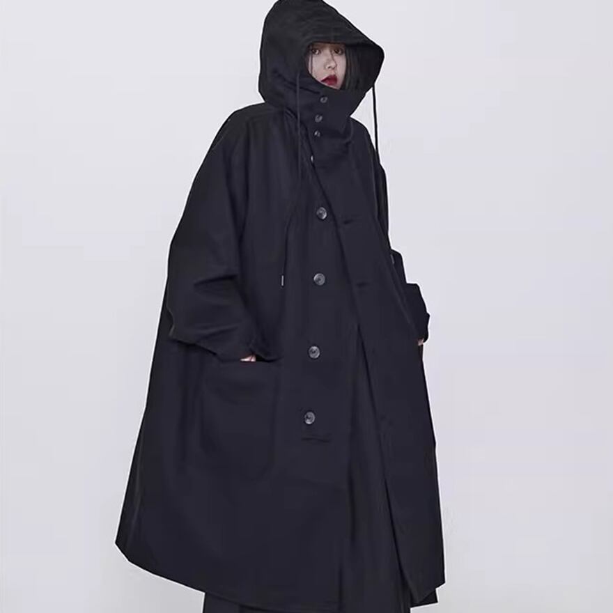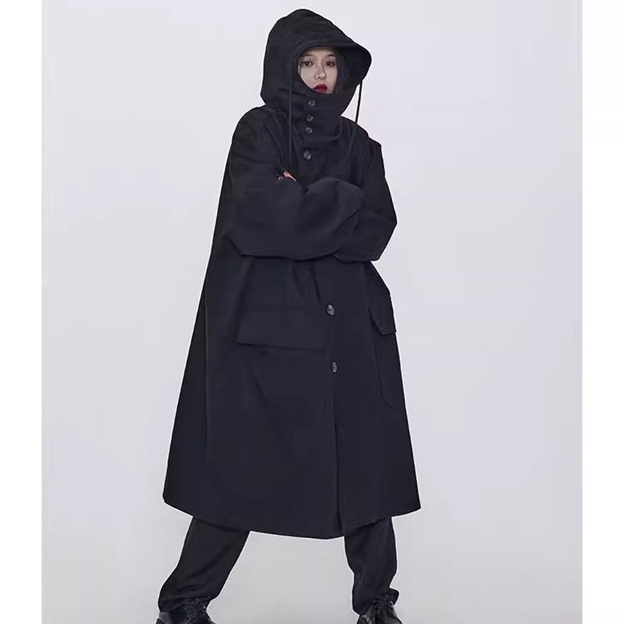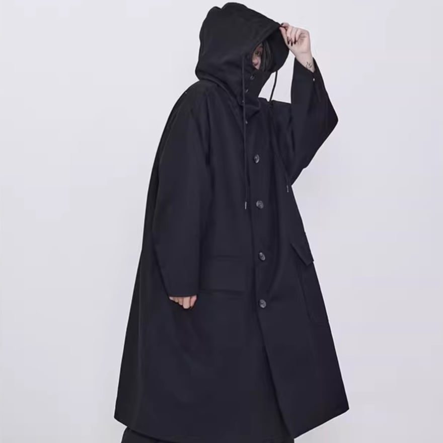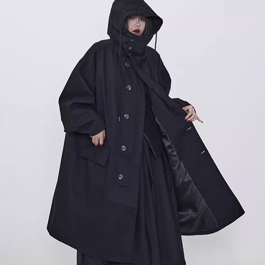 関連キーワード: #モード系 #ゴシック #アウター #コート #ロングコート #フード付き #オーバーサイズ #ビッグシルエット #黒 #オールブラック #個性的 #秋冬