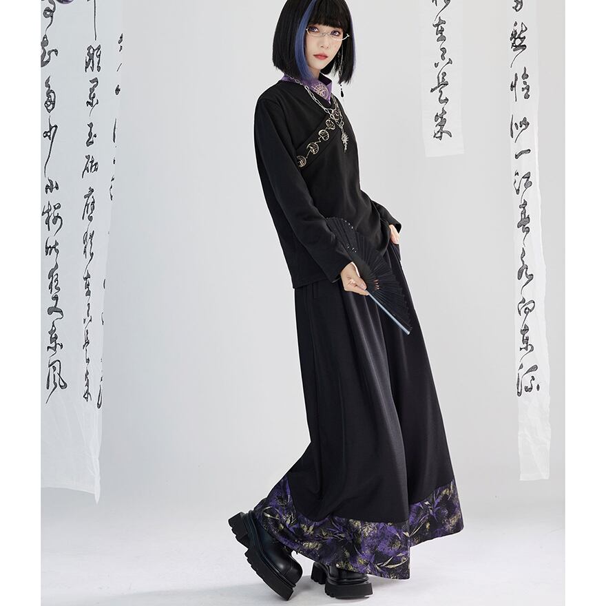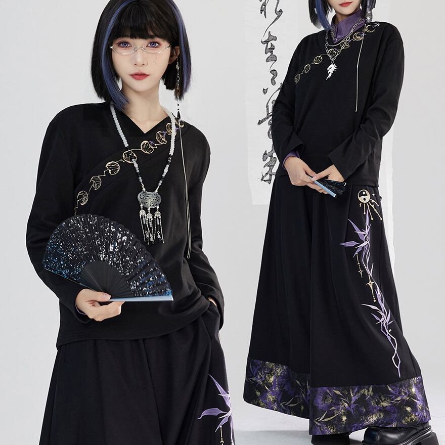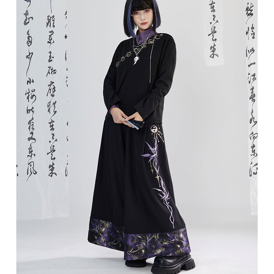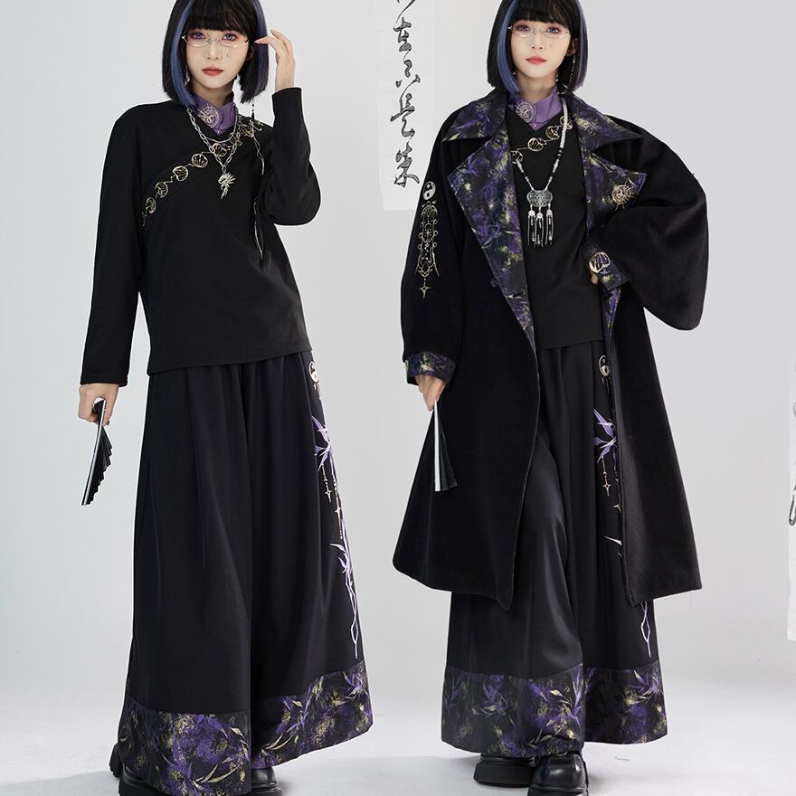 関連キーワード: #サブカル #中華風 #チャイナ #トップス #長袖 #月 #刺繍 #アシンメトリー #モード系 #個性的 #黒