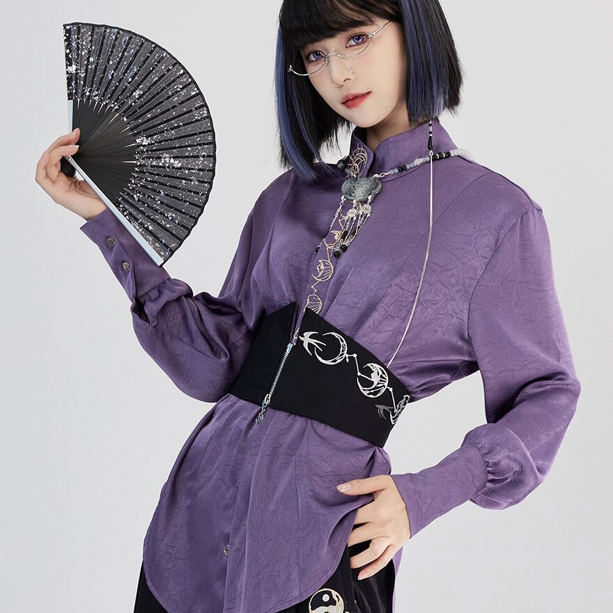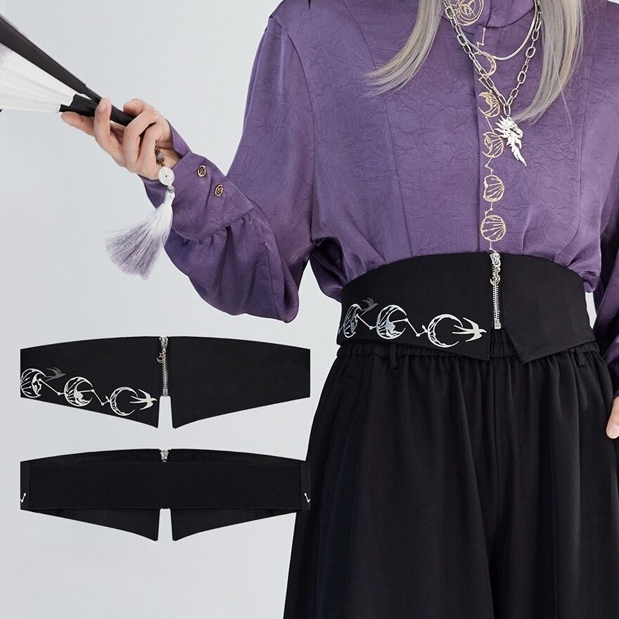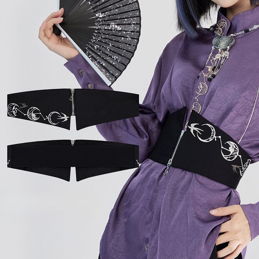 関連キーワード: #サブカル #中華風 #チャイナ #ウエストベルト #コルセットベルト #刺繍 #月 #鳥 #ジッパー #個性的 #モード系 #黒