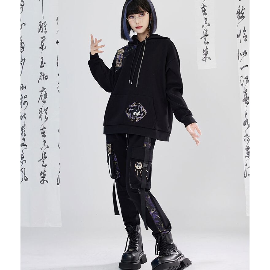 関連キーワード: #サブカル #中華風 #チャイナ #カーゴパンツ #ジョガーパンツ #刺繍 #陰陽 #ストリートファッション #ジェンダーレス #ユニセックス #個性的 #黒