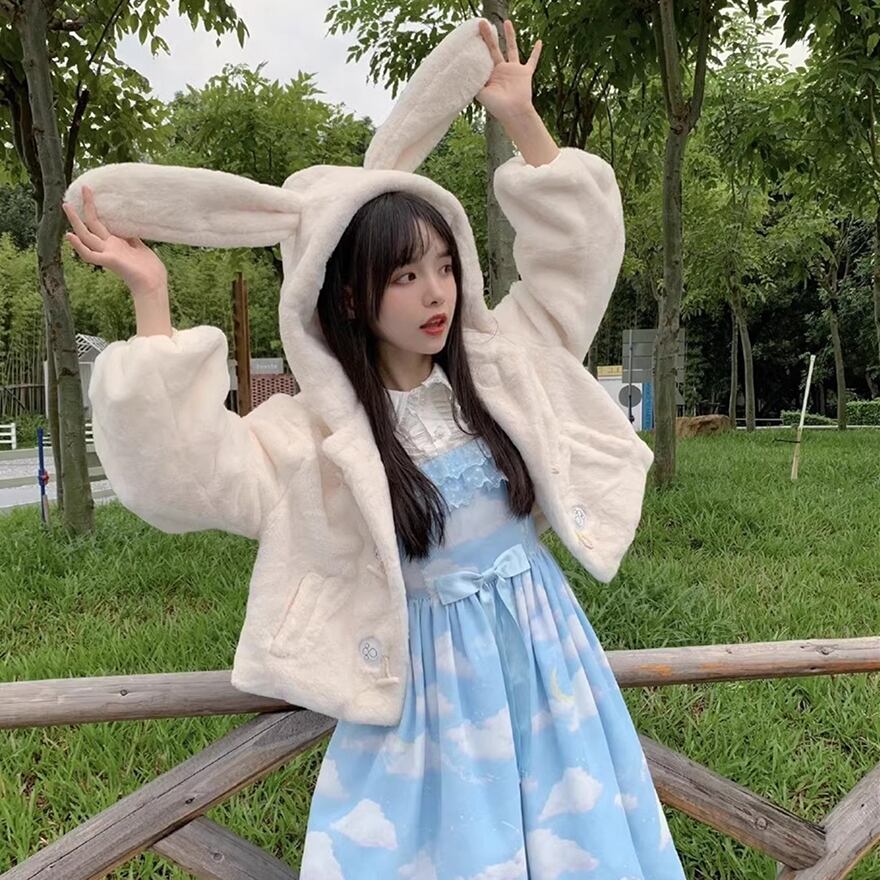 Alice style ロリータ ファーコート うさぎ耳 ふわふわ ジャケット
