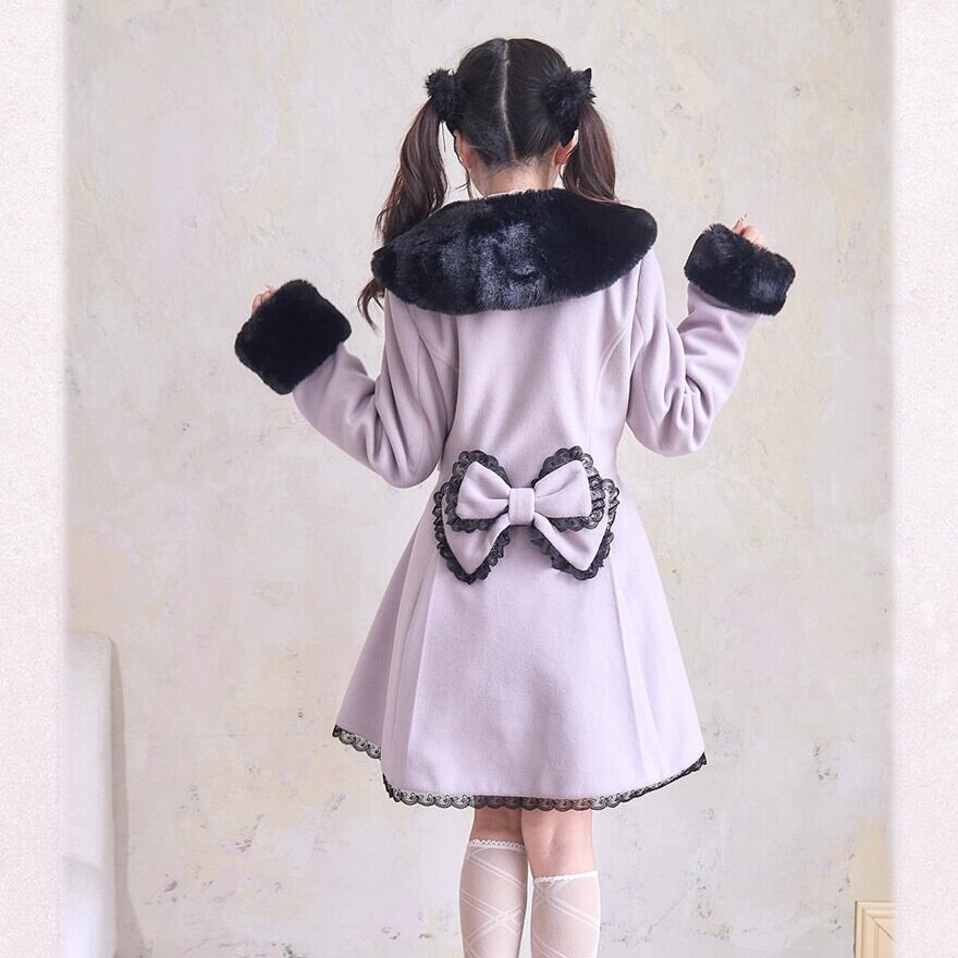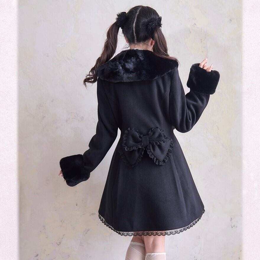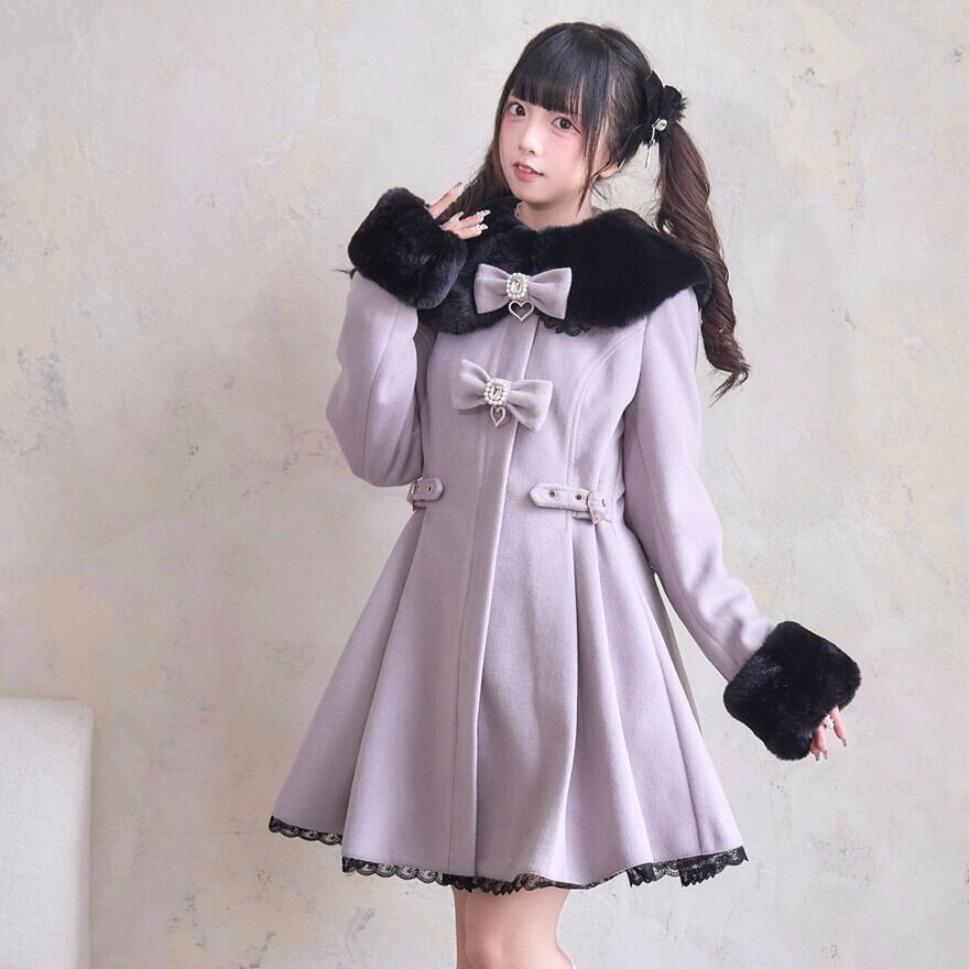 量産型 ロリィタ コート ファー リボン ハート ビジュー フレア レース 冬
