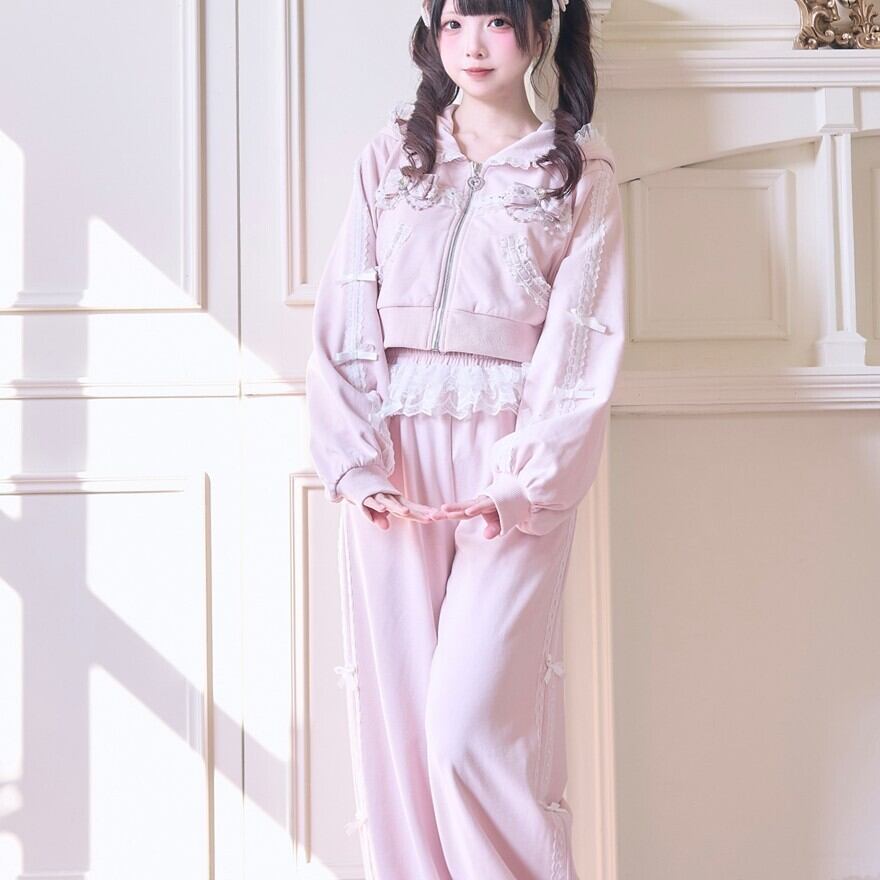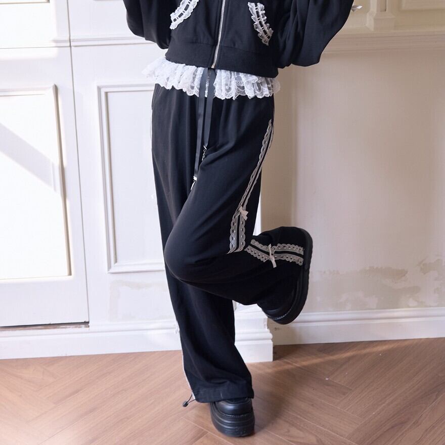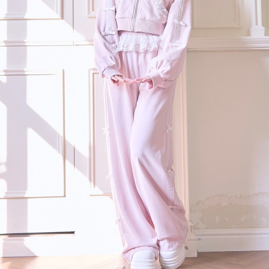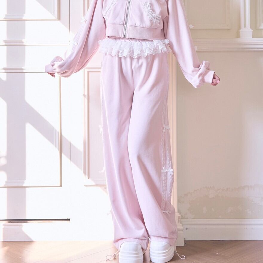 地雷系 レース リボン ジャージ パンツ ロリィタ セットアップ対応 甘め 部屋着