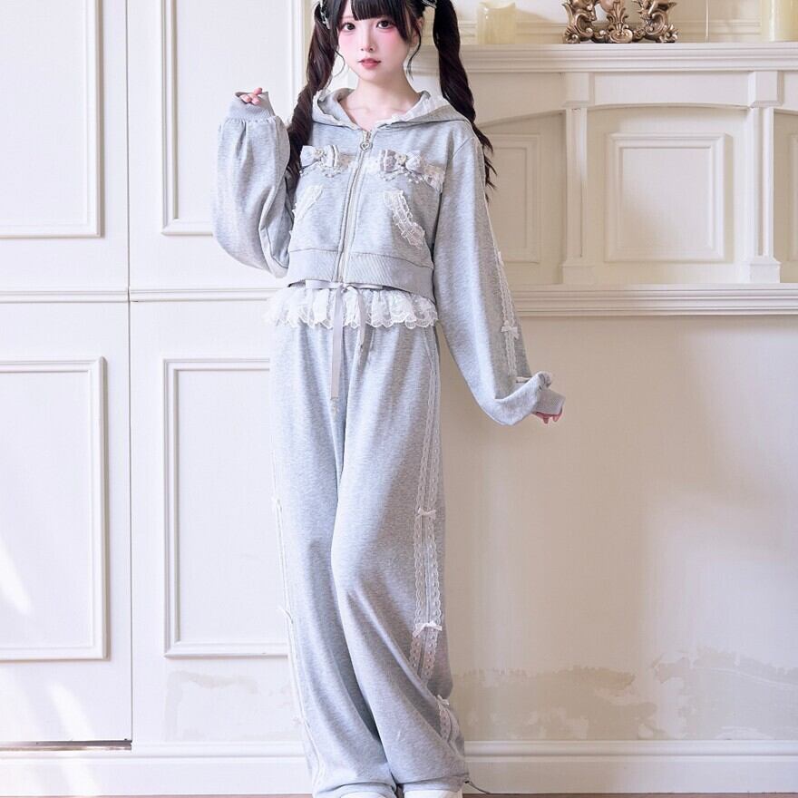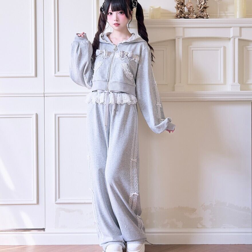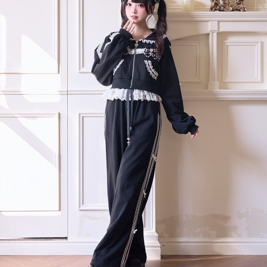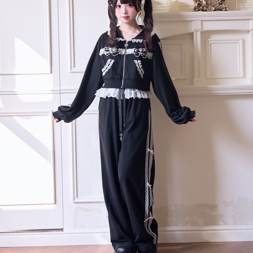地雷系 レース リボン ジャージ パンツ ロリィタ セットアップ対応 甘め 部屋着