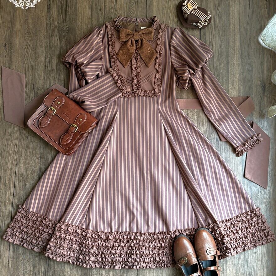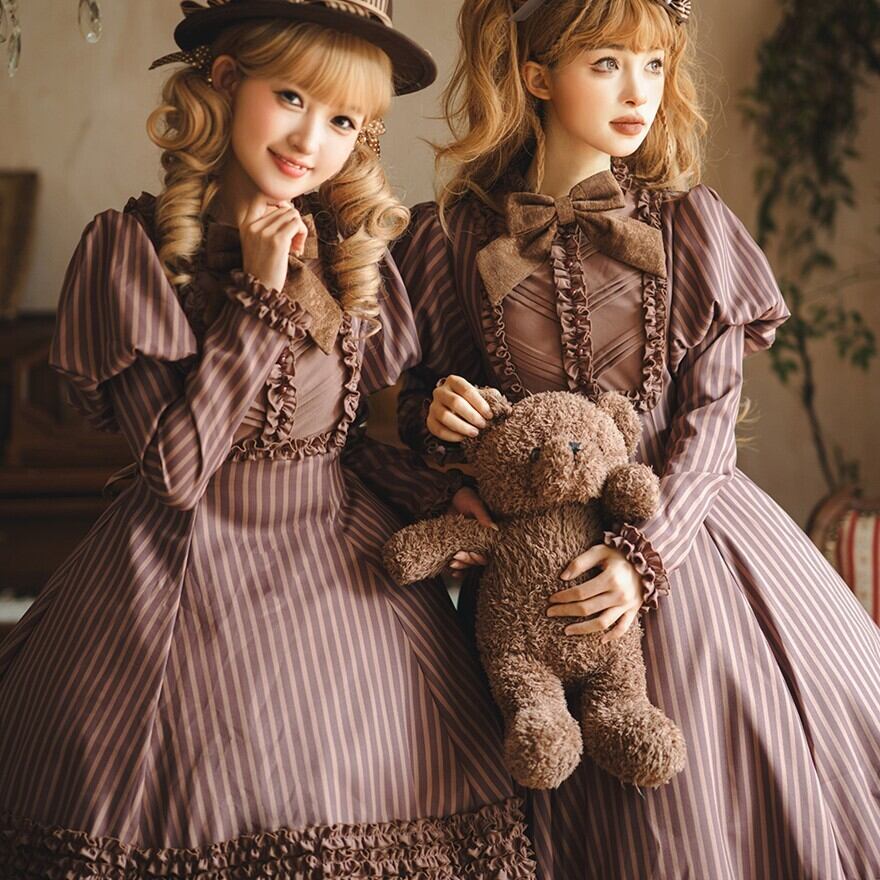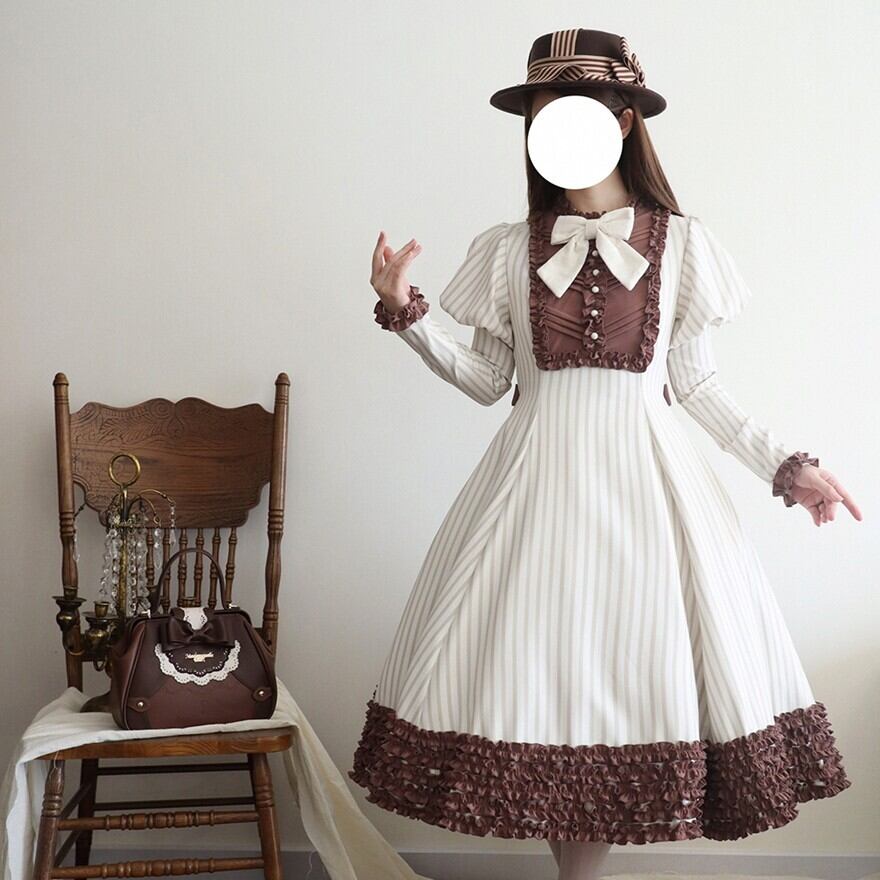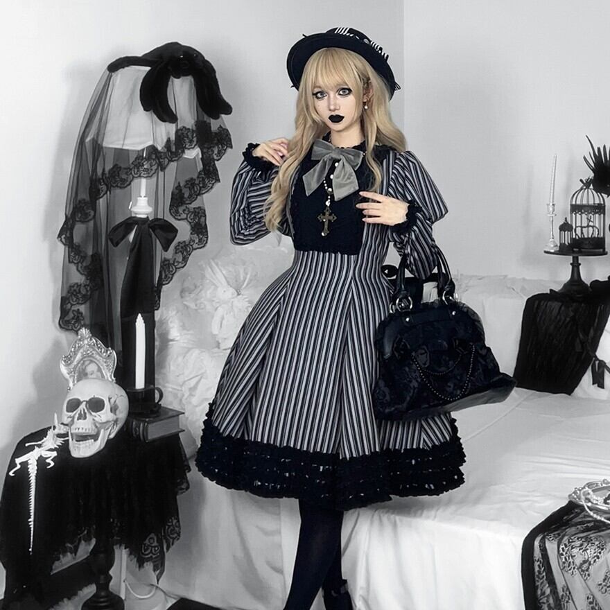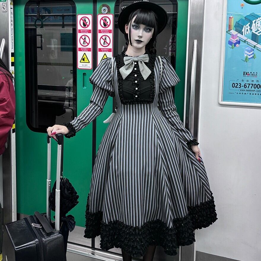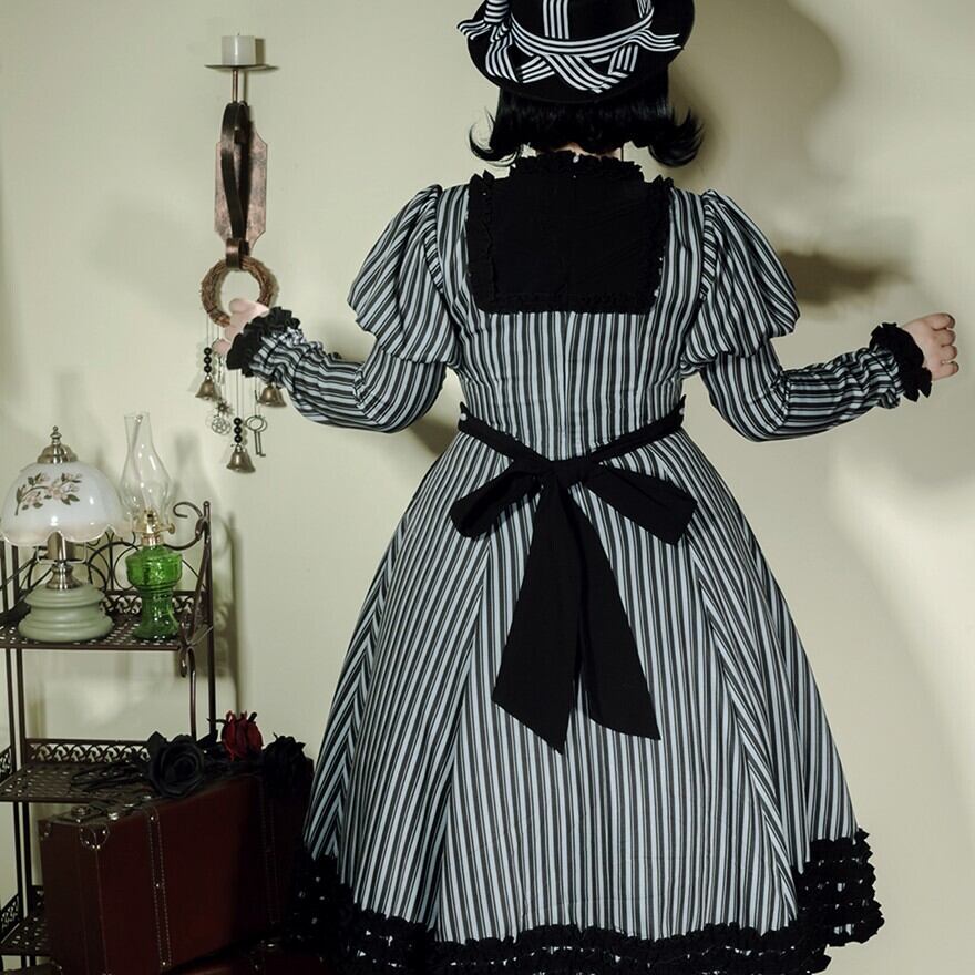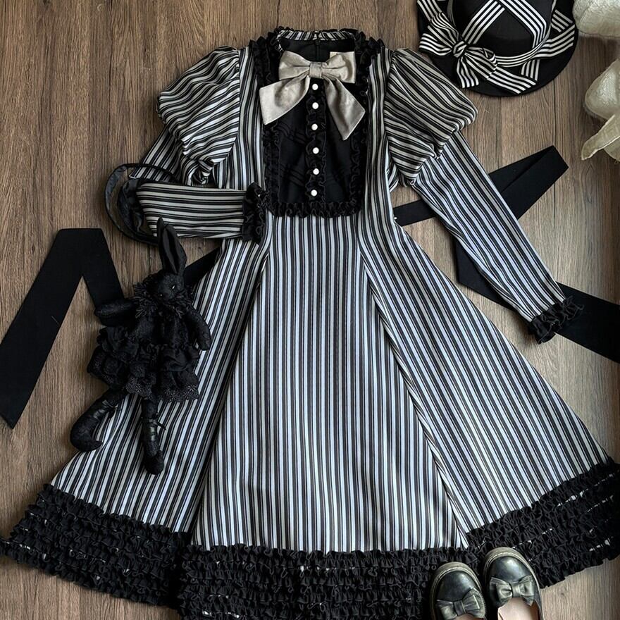 関連キーワード: #ロリータ #クラロリ #ワンピース #ストライプ #フリル #エレガント #シック #可愛い #ドーリー #長袖