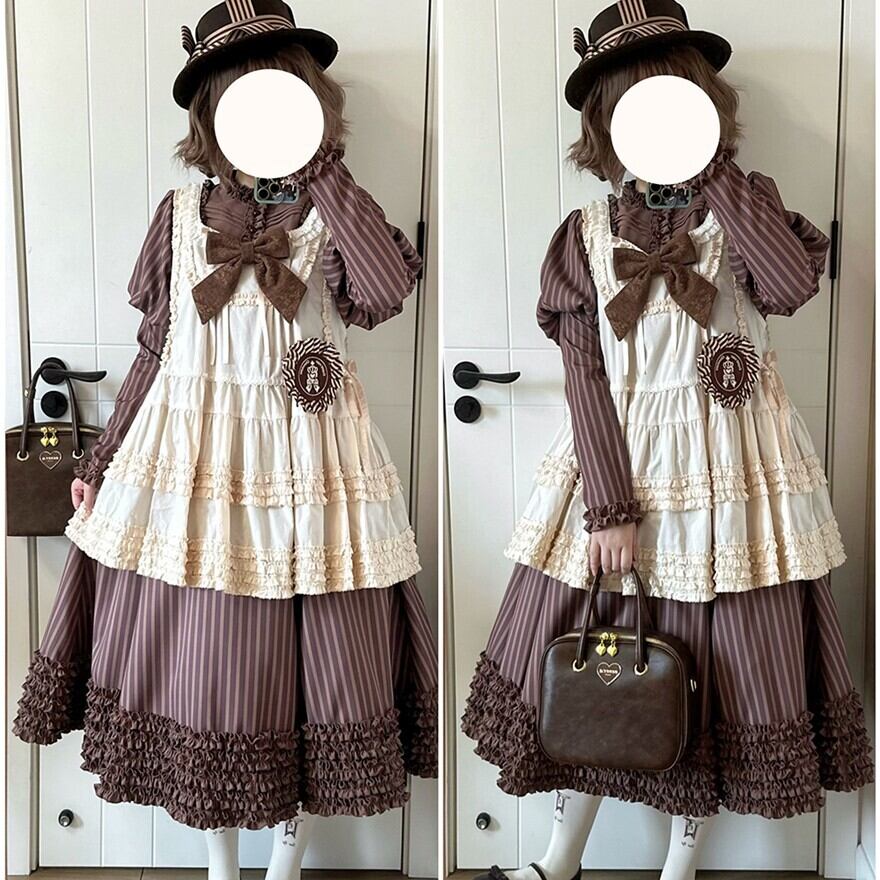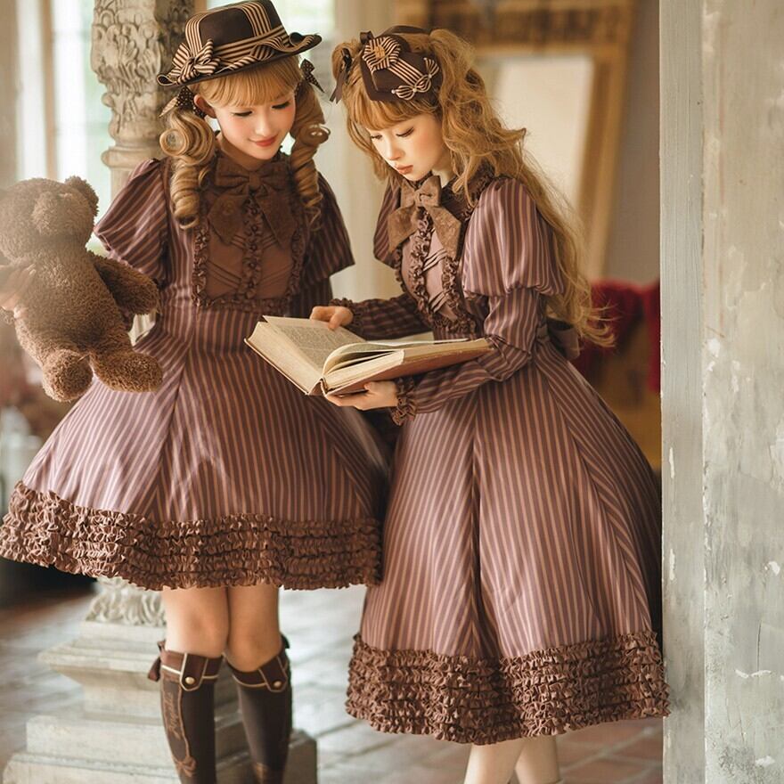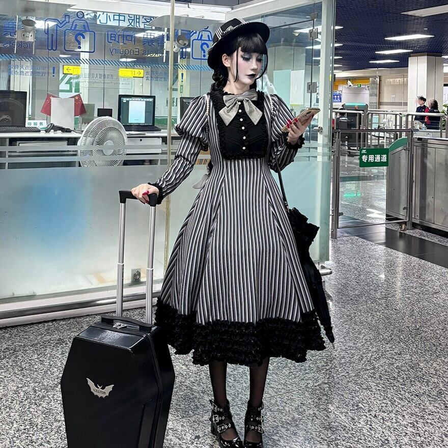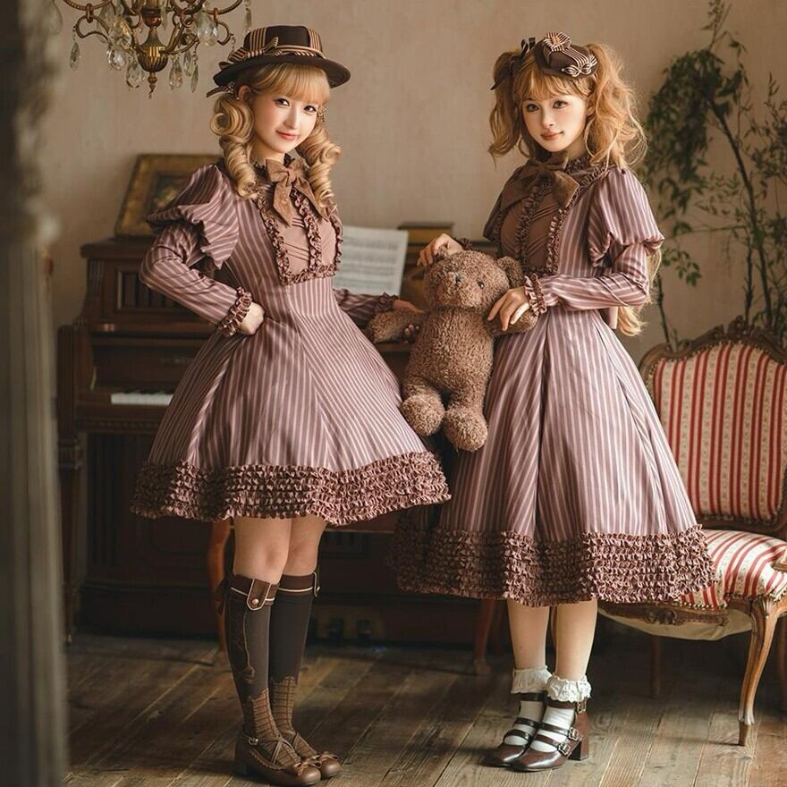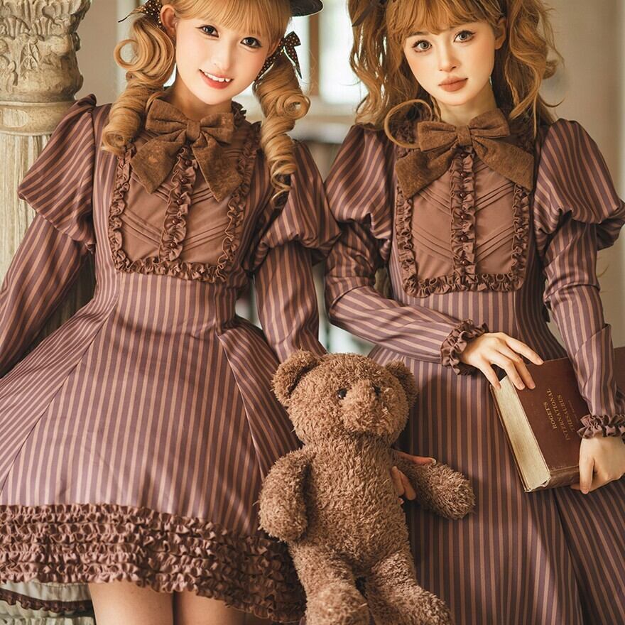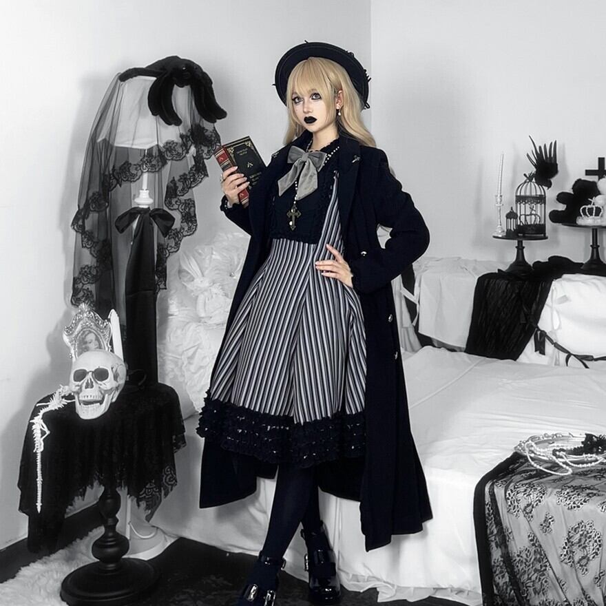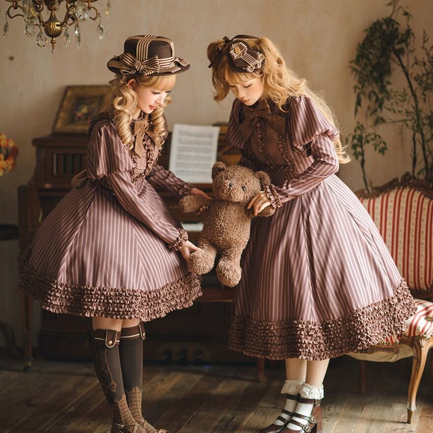 関連キーワード: #ロリータ #クラロリ #ワンピース #ストライプ #フリル #エレガント #シック #可愛い #ドーリー #長袖