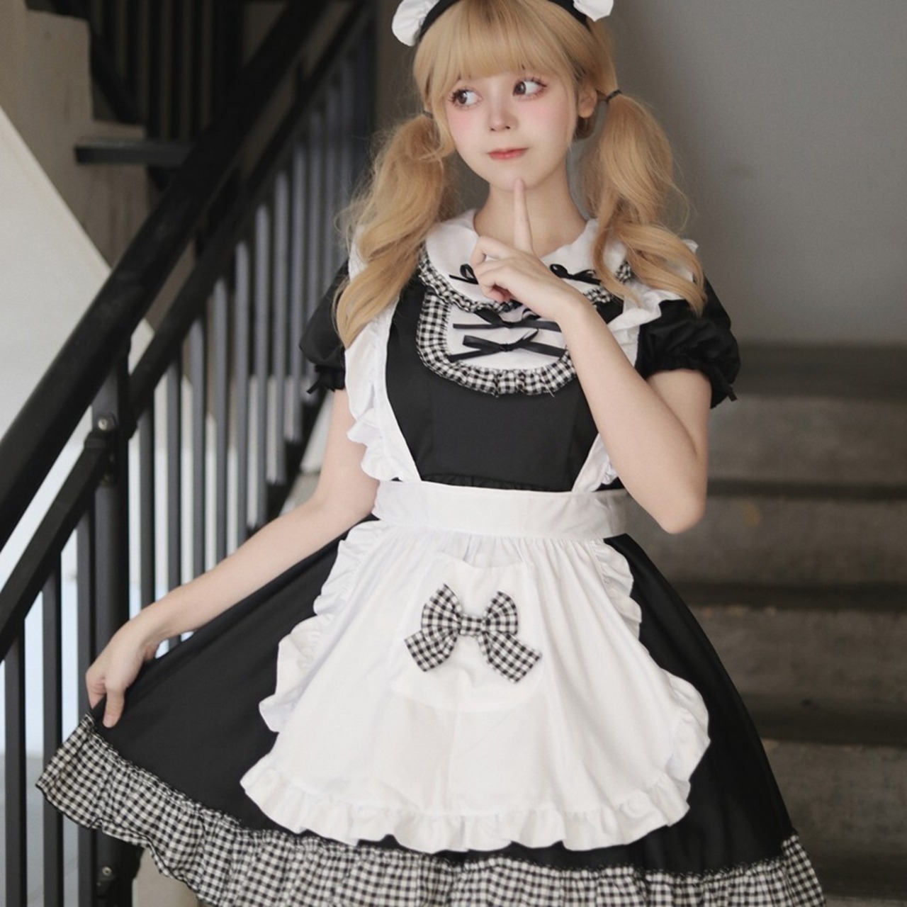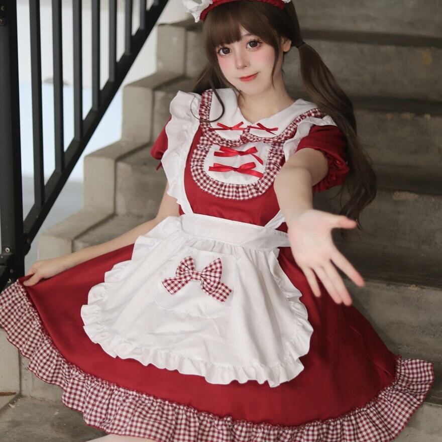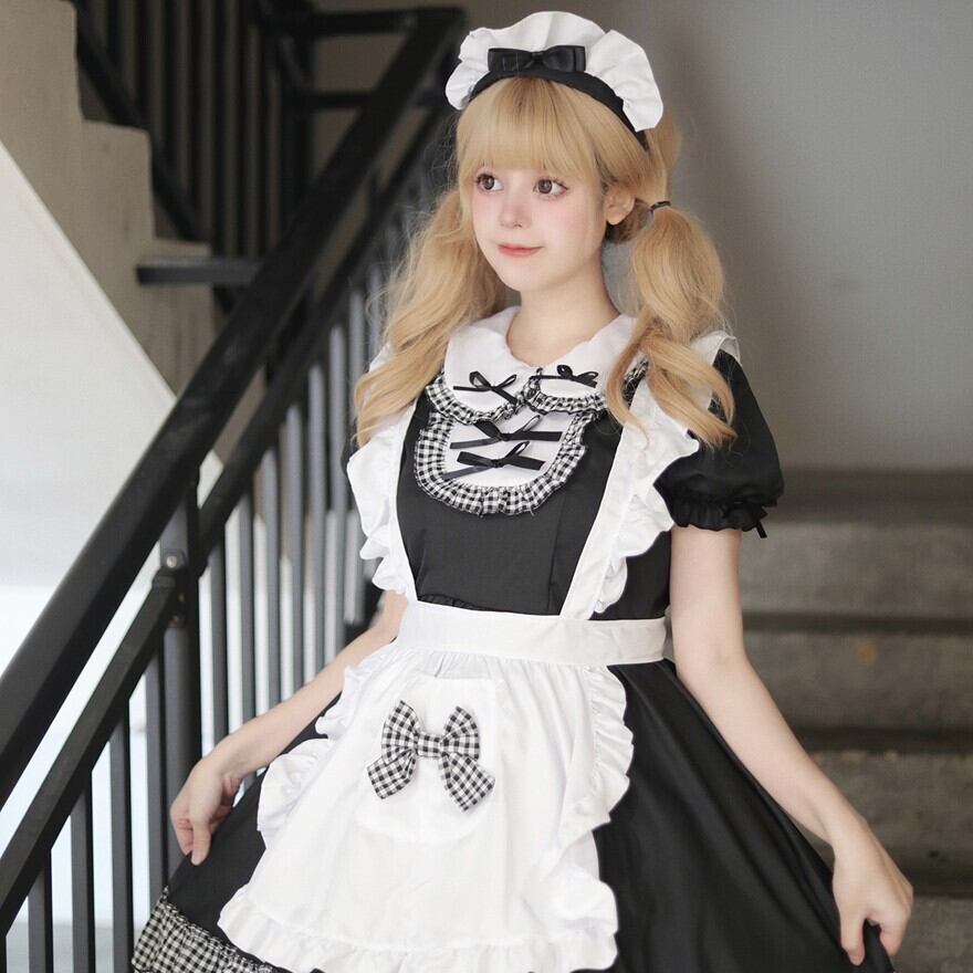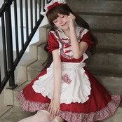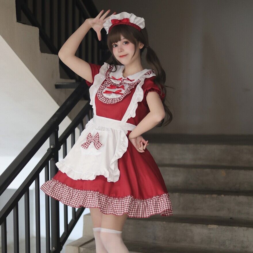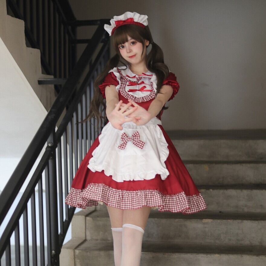 Alice style コスプレ メイドワンピ チェック柄 コンカフェキャスト衣装 クリスマスパーティ イベント衣装