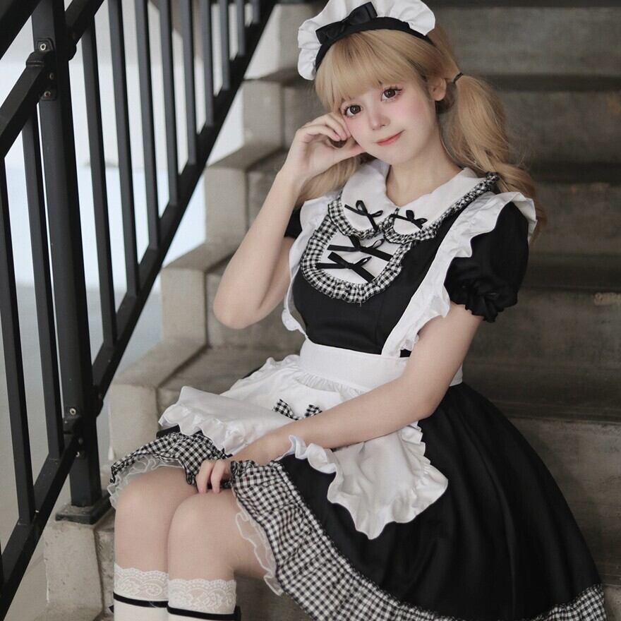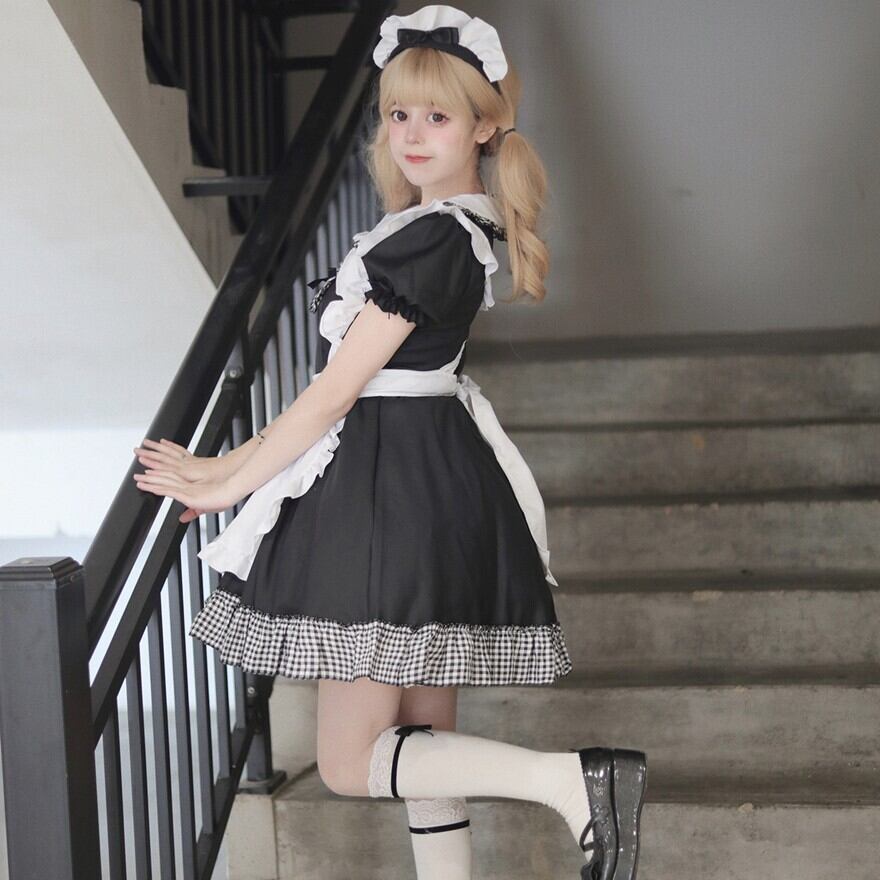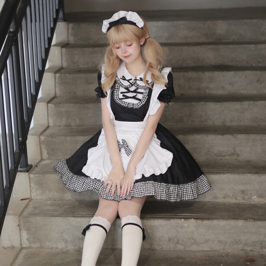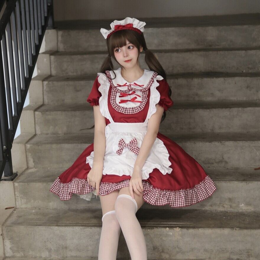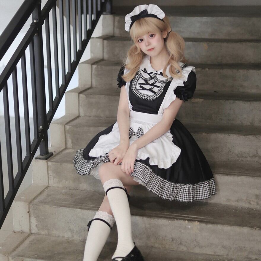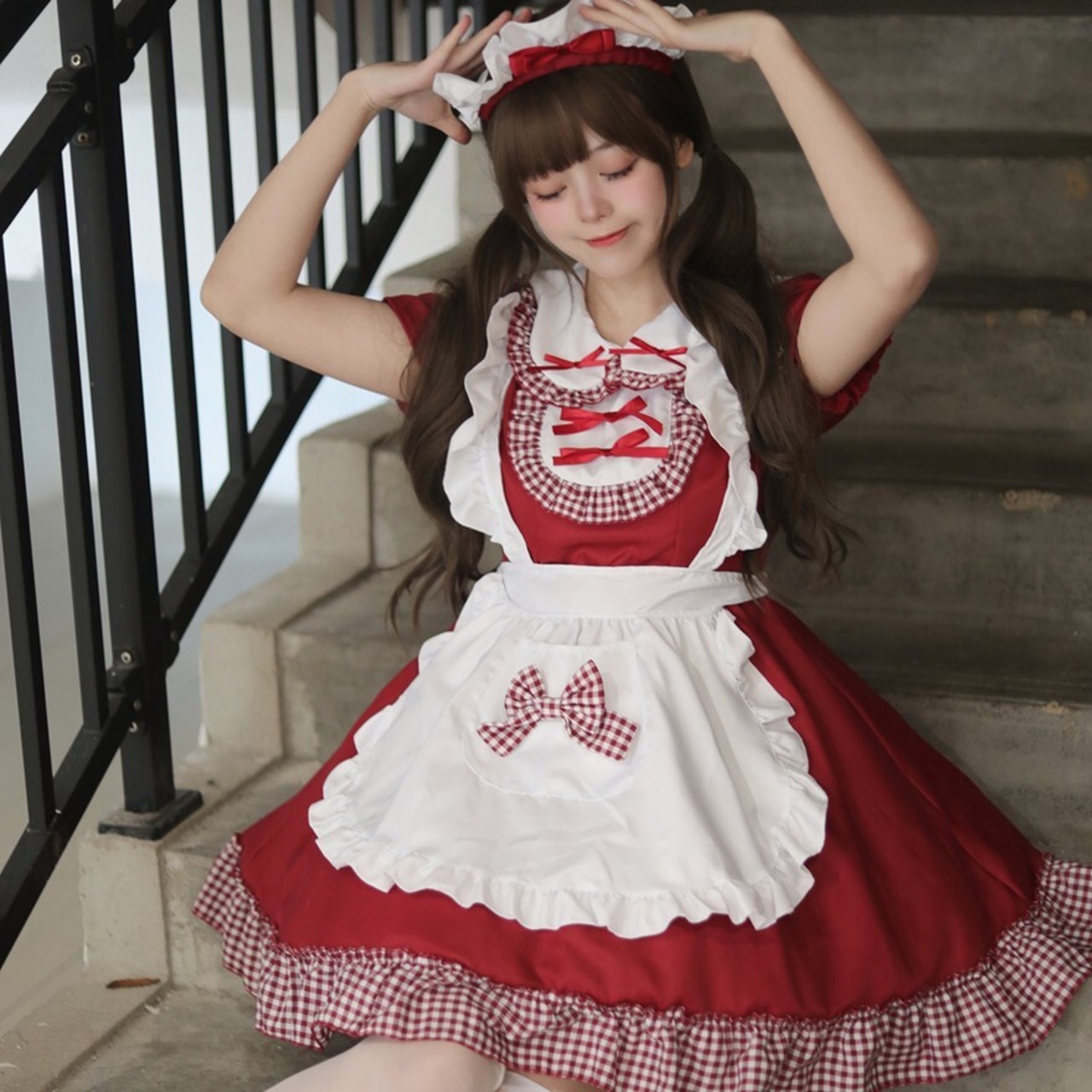 Alice style コスプレ メイドワンピ チェック柄 コンカフェキャスト衣装 クリスマスパーティ イベント衣装