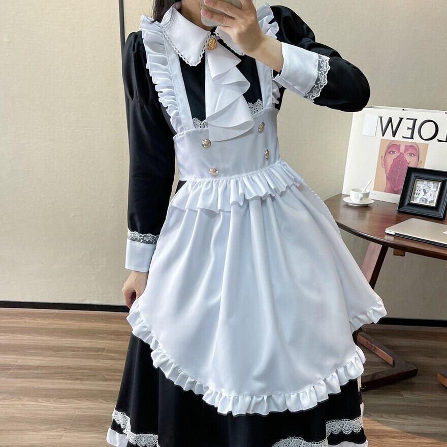 関連キーワード: #メイド服 #コスプレ #クラシカル #モノトーン #エプロン #可愛い #ハロウィン #ロリータ