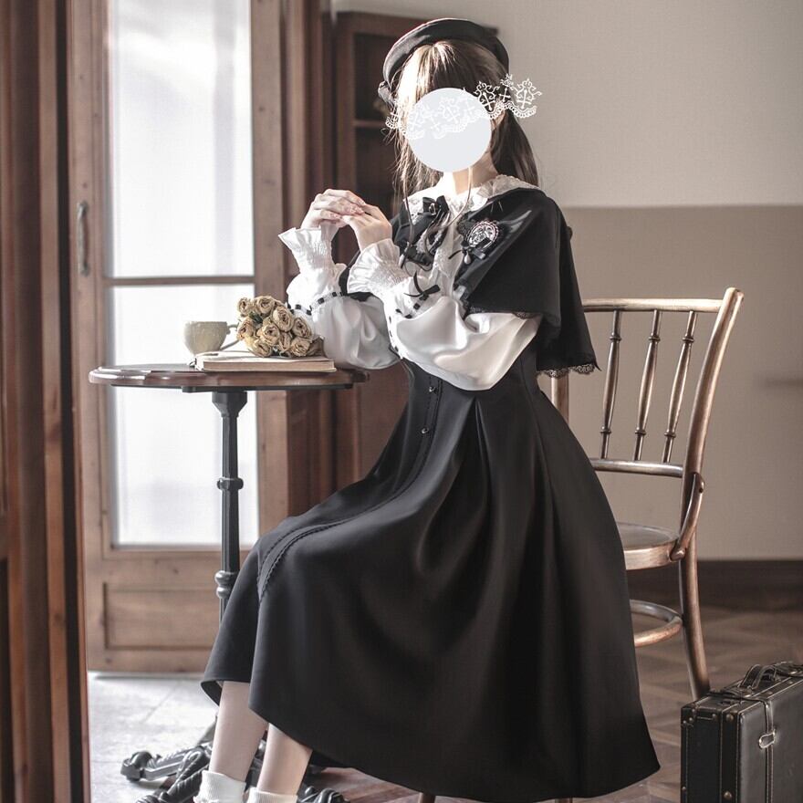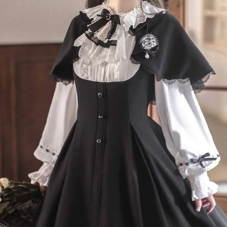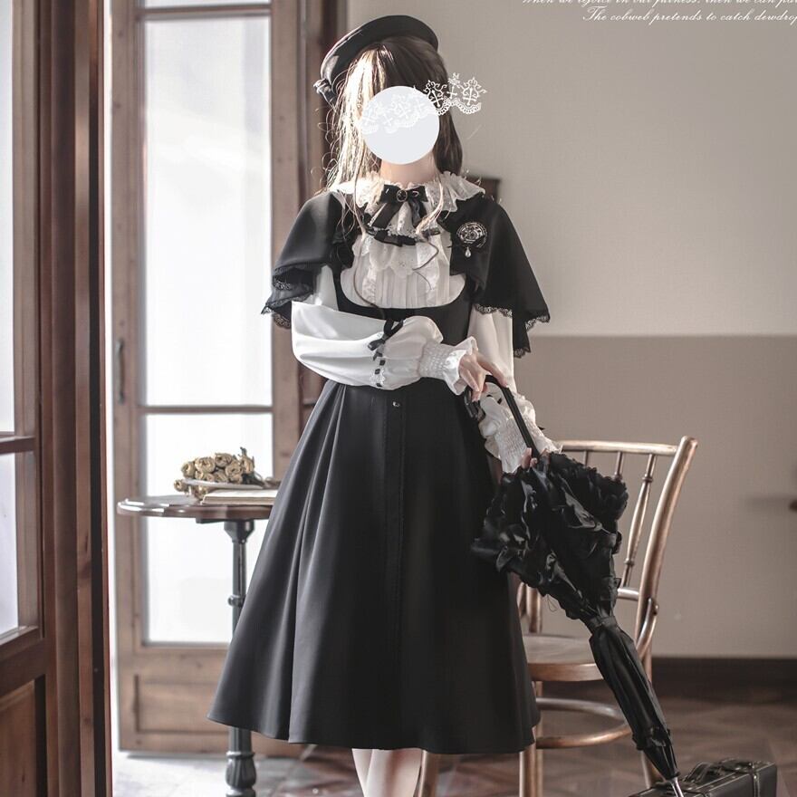 Alice style クラロリ セットアップ 秋色 ケープ ワンピース 学園風 控えめ 英国風 胡桃木