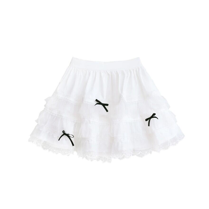 Alice style ロリィタ スカート 白 ミニ チュール パニエ併用可 レース フリル リボン付き ティアード ボトムス
