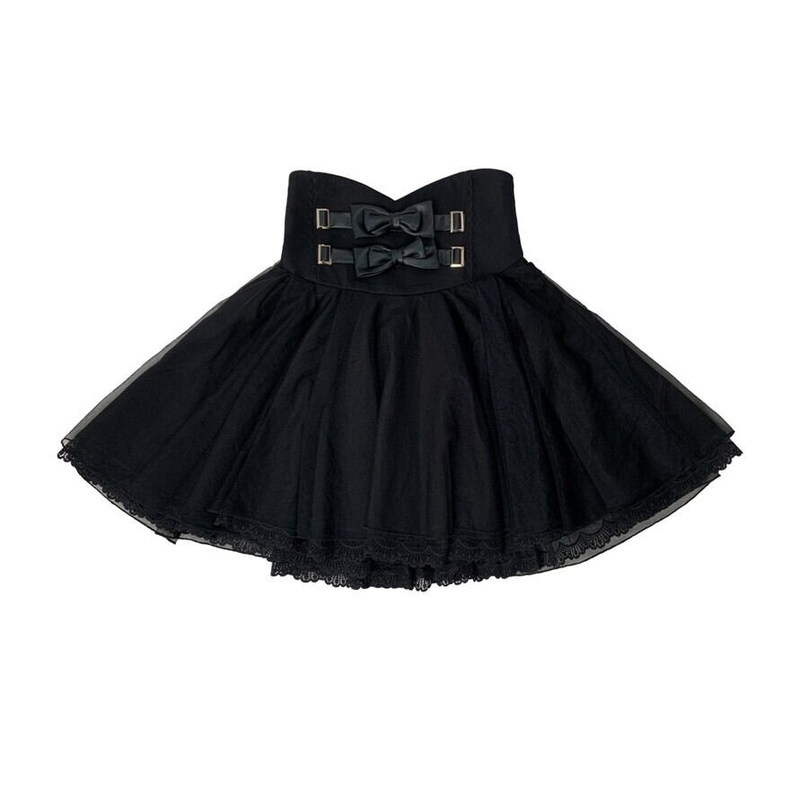 Alice style ロリィタ スカート 黒 ハイウエスト ミニ チュール レース リボン付き 地雷系 量産型 ゴスロリ ボトムス