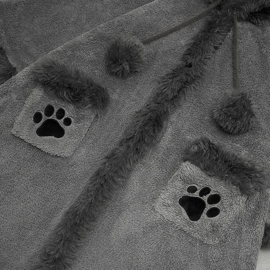 肉球刺繍ポケット: 左右のポケットには存在感のある肉球がデザインされており、手を入れるたびに気分が上がるこだわり仕様です。