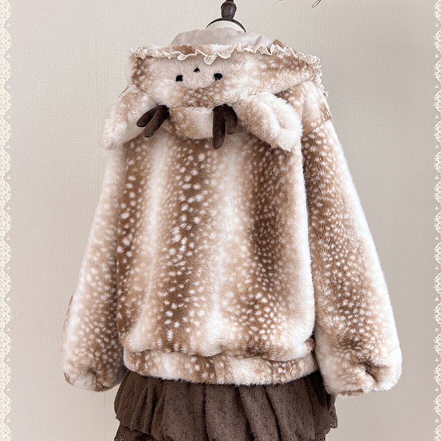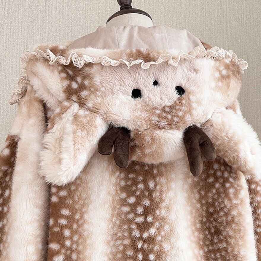 雪の森のバンビさん♪ 小鹿フードのふわもこボア・アニマルコート