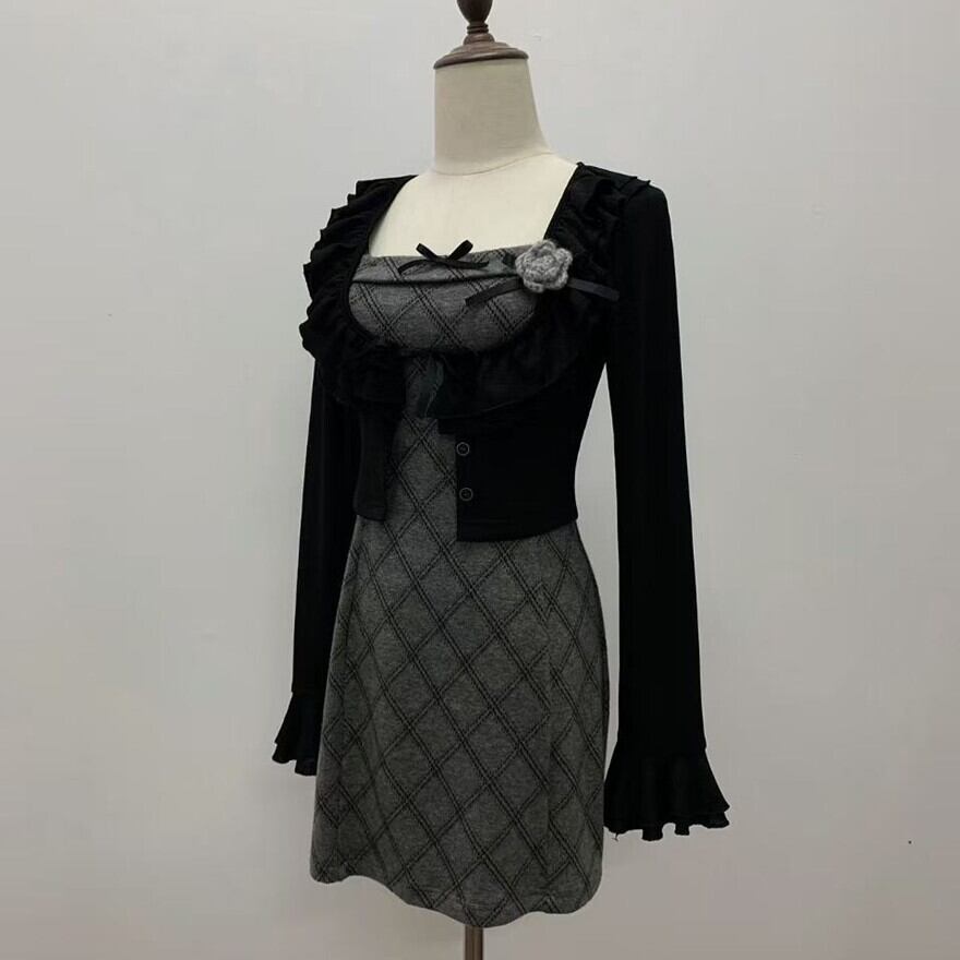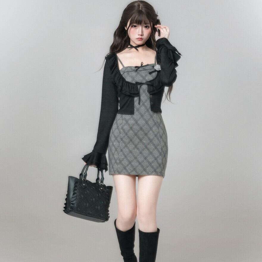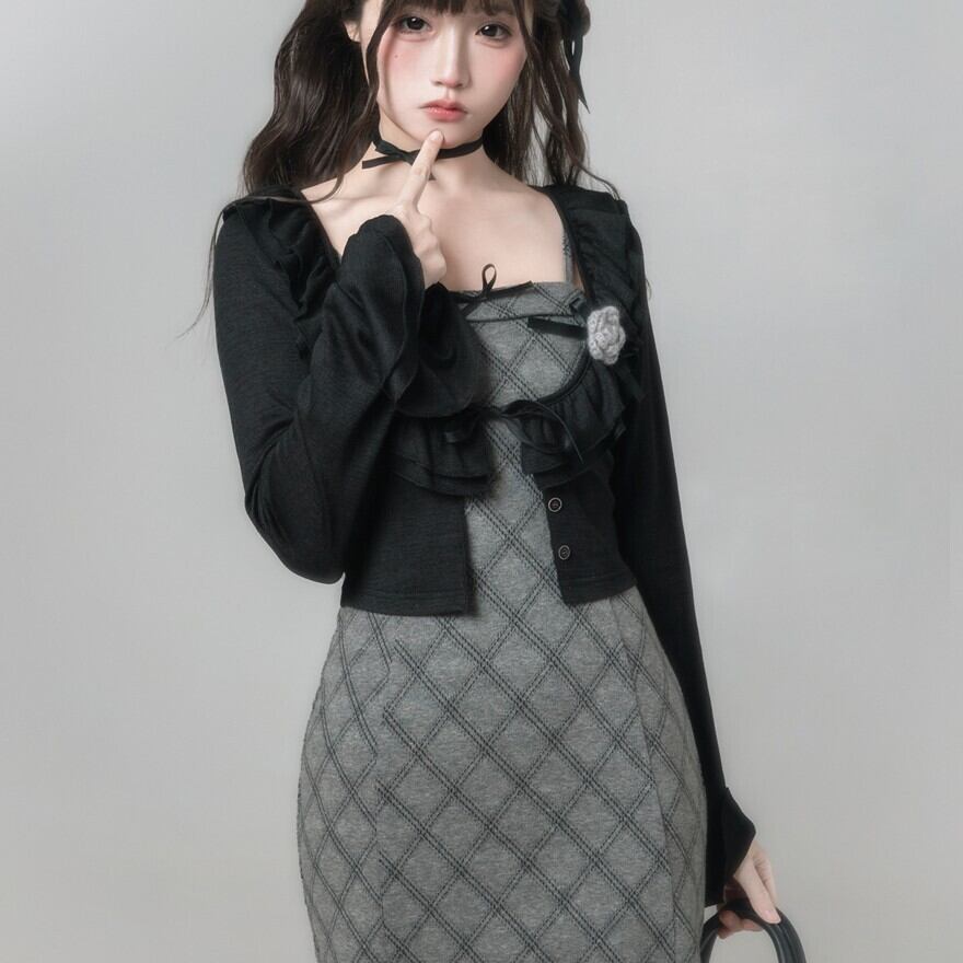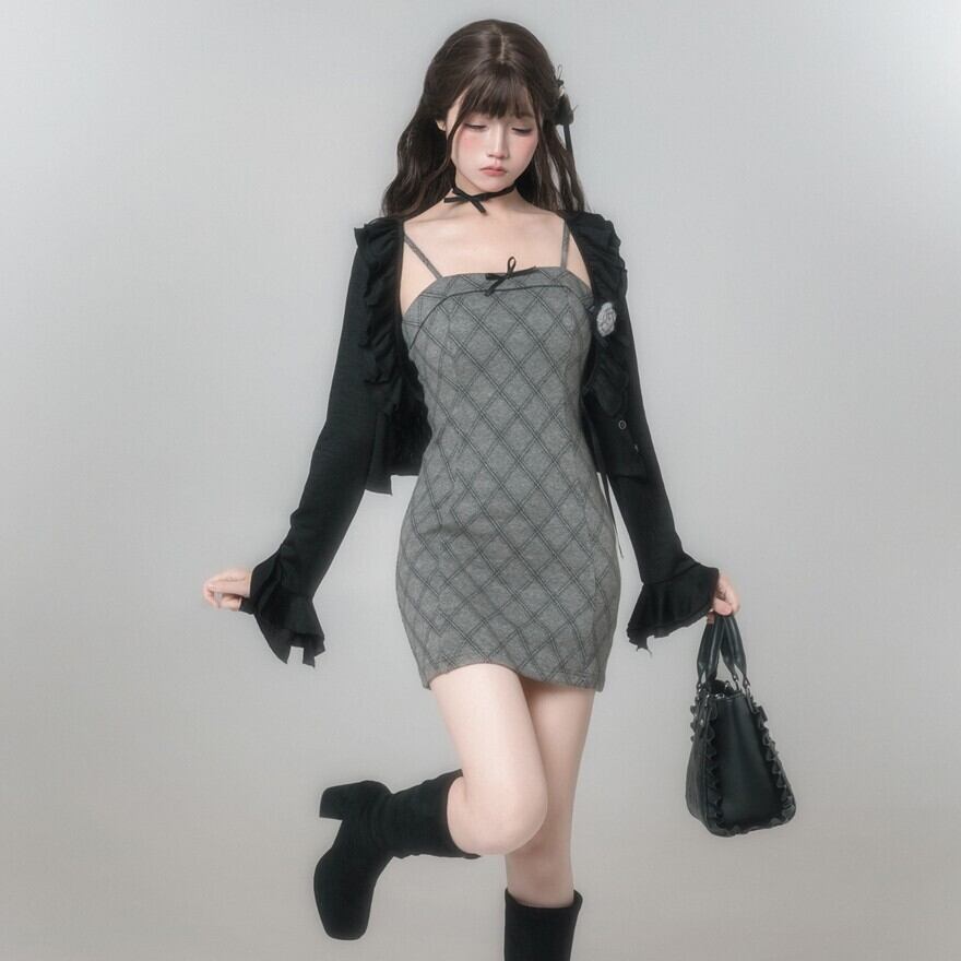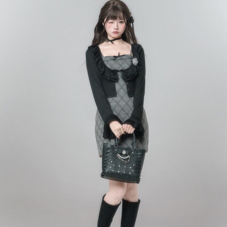 関連キーワード: #ロリータ #クラロリ #セットアップ #ジャンパースカート #ジャケット #モノトーン #チェック柄 #エレガント #シック #可愛い