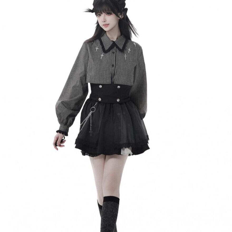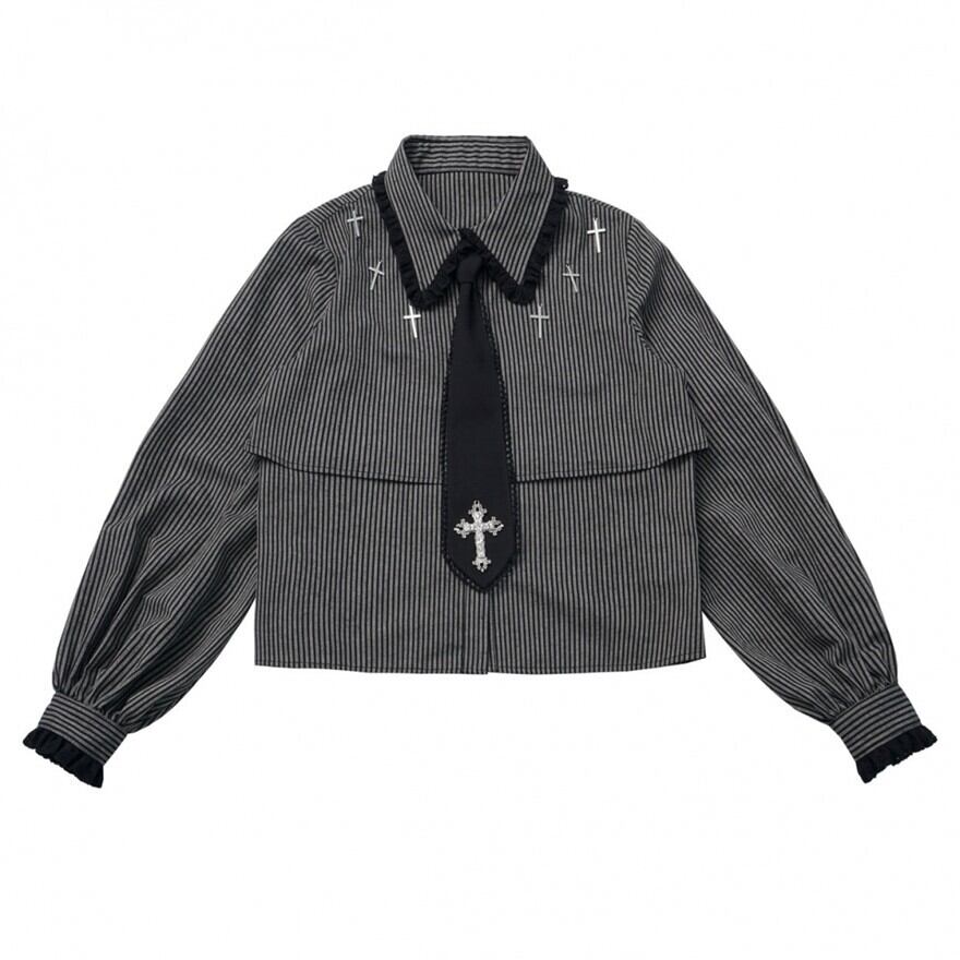 関連キーワード: #ロリータ #クラロリ #シャツ #モノトーン #ストライプ #クロス #エレガント #シック #可愛