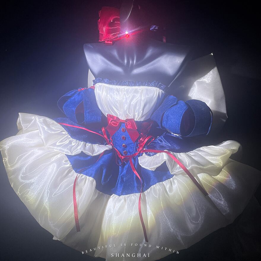 白雪姫を思わせる高貴な配色と、背面の巨大なリボンが圧倒的な存在感を放つ新作ドレス。