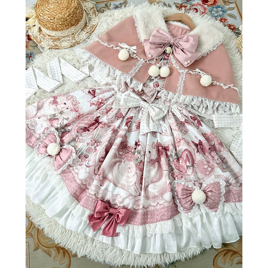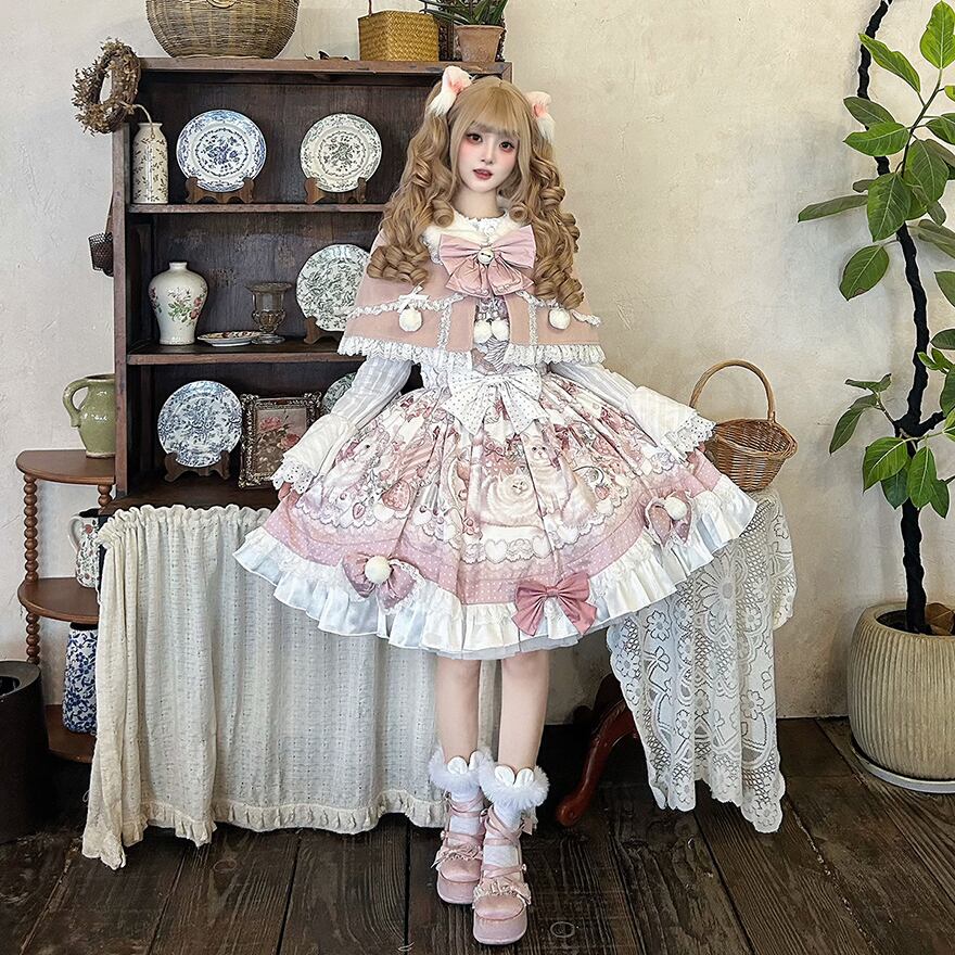 【夢かわいい】スイートロリィタ セットアップ ケープ ドレス | ティアード フリル 姫袖 パーティー 撮影会