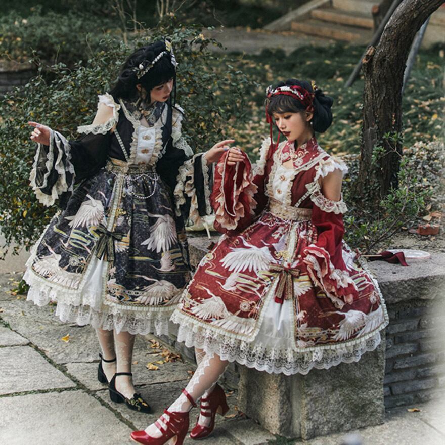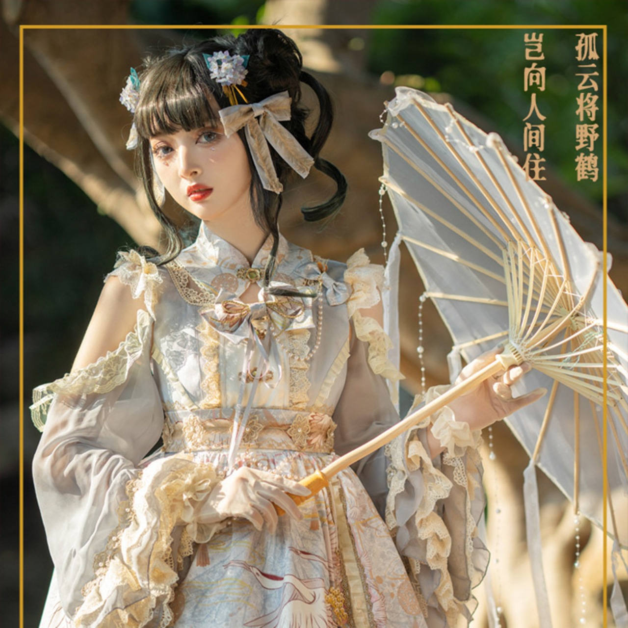 関連キーワード: #華ロリ #中華ロリータ #チャイナドレス #鶴柄 #姫袖 #オープンショルダー #双子コーデ #撮影会 #コスプレ #幻想的