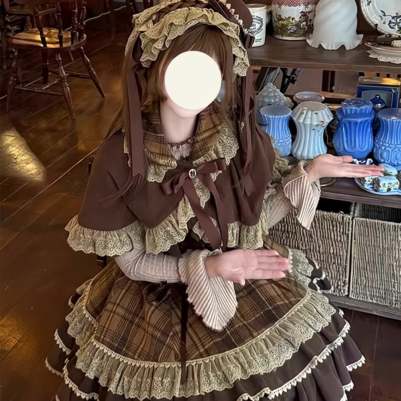 クラロリ 森ガール風 ケープ&JSK ブラウス 3点セット ブラウン チェック柄 探偵ロリィタ
