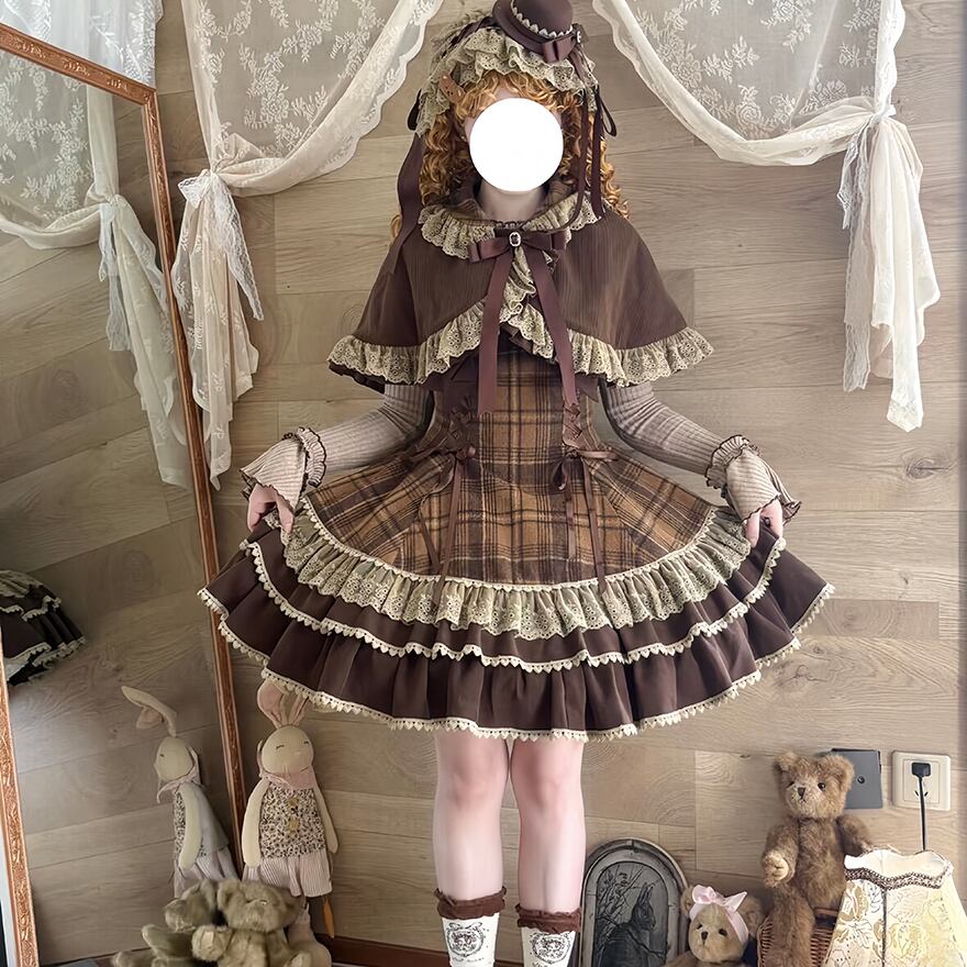 関連キーワード: #クラロリ #森ガール #セットアップ #チェック柄 #ブラウンコーデ #ロリータ #ケープ #秋ファッション #アンティーク #ドール #可愛い