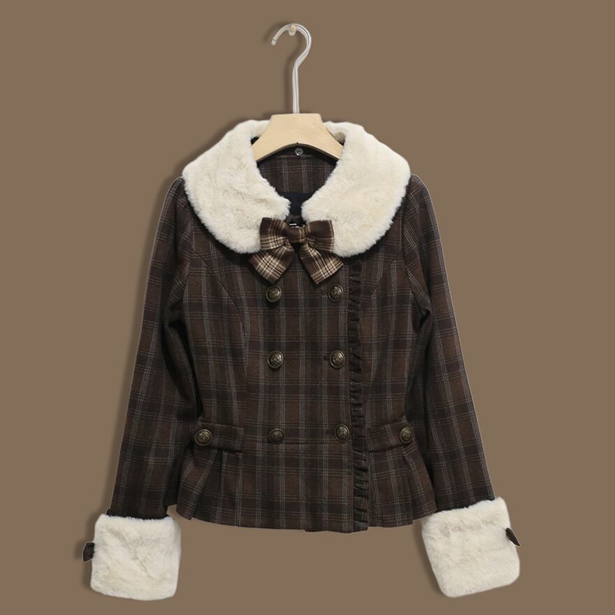 クラシカルロリータ チェック柄 ファー襟 ジャケット ミニスカート 2点セット