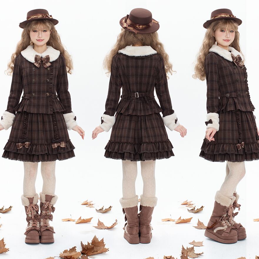 関連キーワード: #クラロリ #森ガール #セットアップ #チェック柄 #ミニスカート #チョコレートカラー #ファー #冬コーデ #学生風 #可愛い