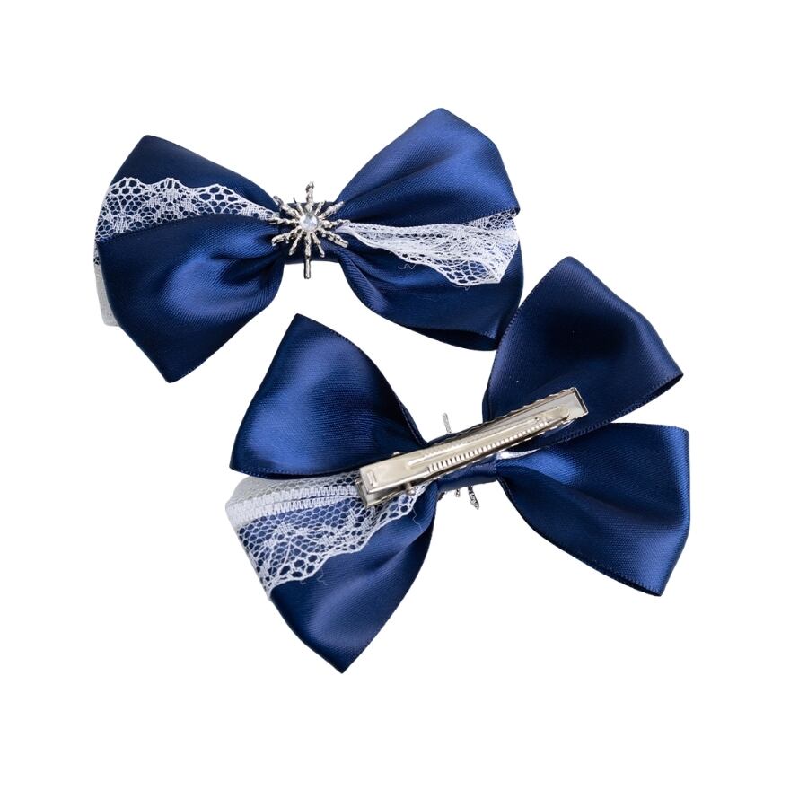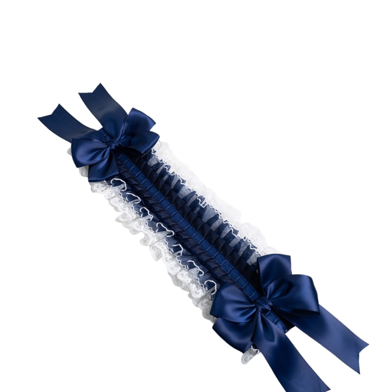 ロリィタファッションが初めての方にも取り入れやすい、ネイビーカラーを基調としたクラシカルなヘッドドレスです。繊細なレースと落ち着いたサテンリボンを組み合わせ、甘くなりすぎず上品な印象に仕上げました。ワンピースに合わせるだけでロリィタらしい雰囲気が完成し、アクセサリー選びに不安のある初心者の方にも安心しておすすめできる一点です。