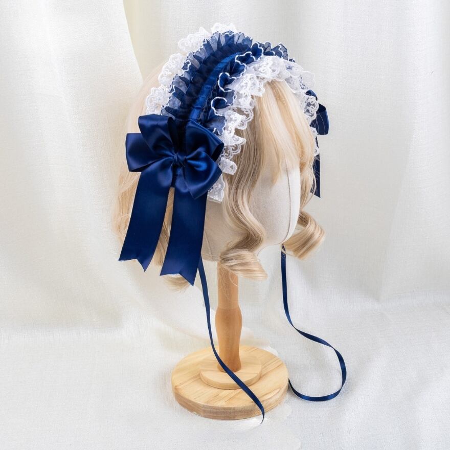 【はじめてでも安心】ネイビーレース重ね クラシカルロリィタ ボンネット
