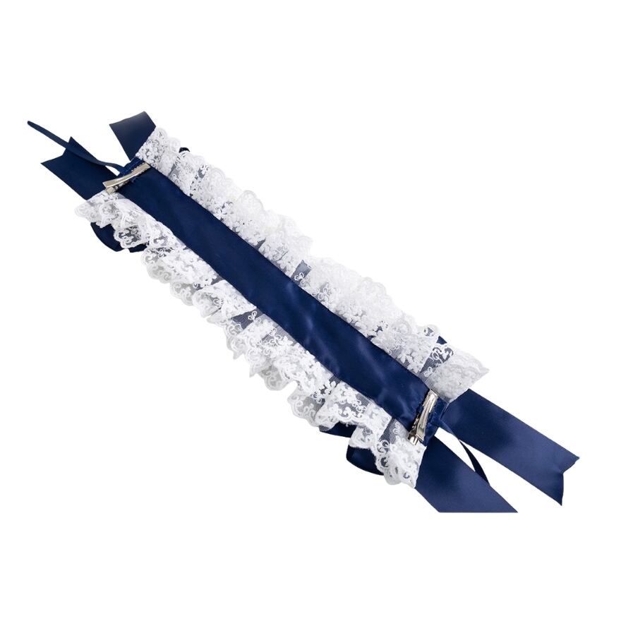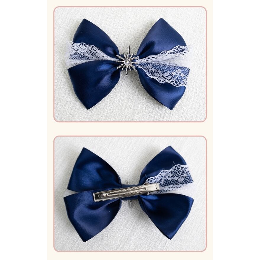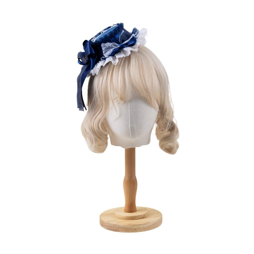 ロリィタファッションが初めての方にも取り入れやすい、ネイビーカラーのクラシカルなヘッドリボンです。