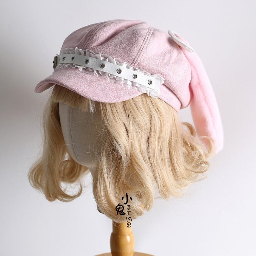 うさ耳付き ピンクキャスケット風デザイン帽子(八角帽)