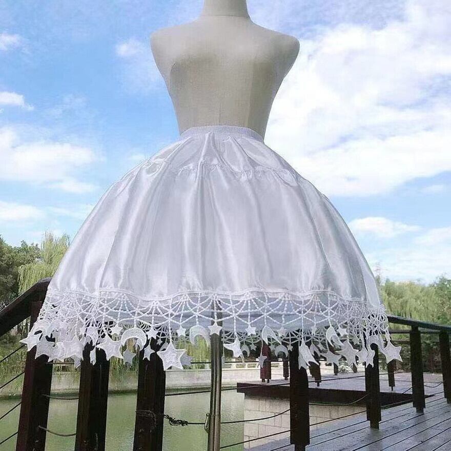 星モチーフのレースが裾を彩る、ロリィタ向けホワイトパニエ。